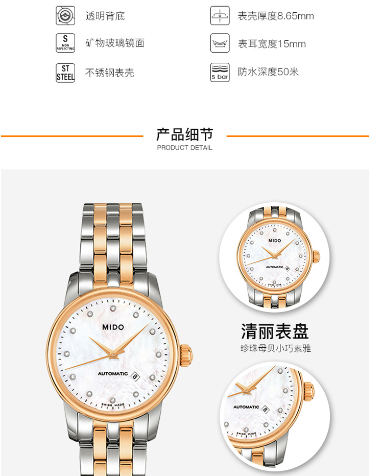 商品名称:MIDO美度 贝伦赛丽系列自动机械女表 (不支持无理由退换货)