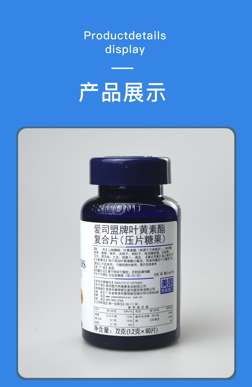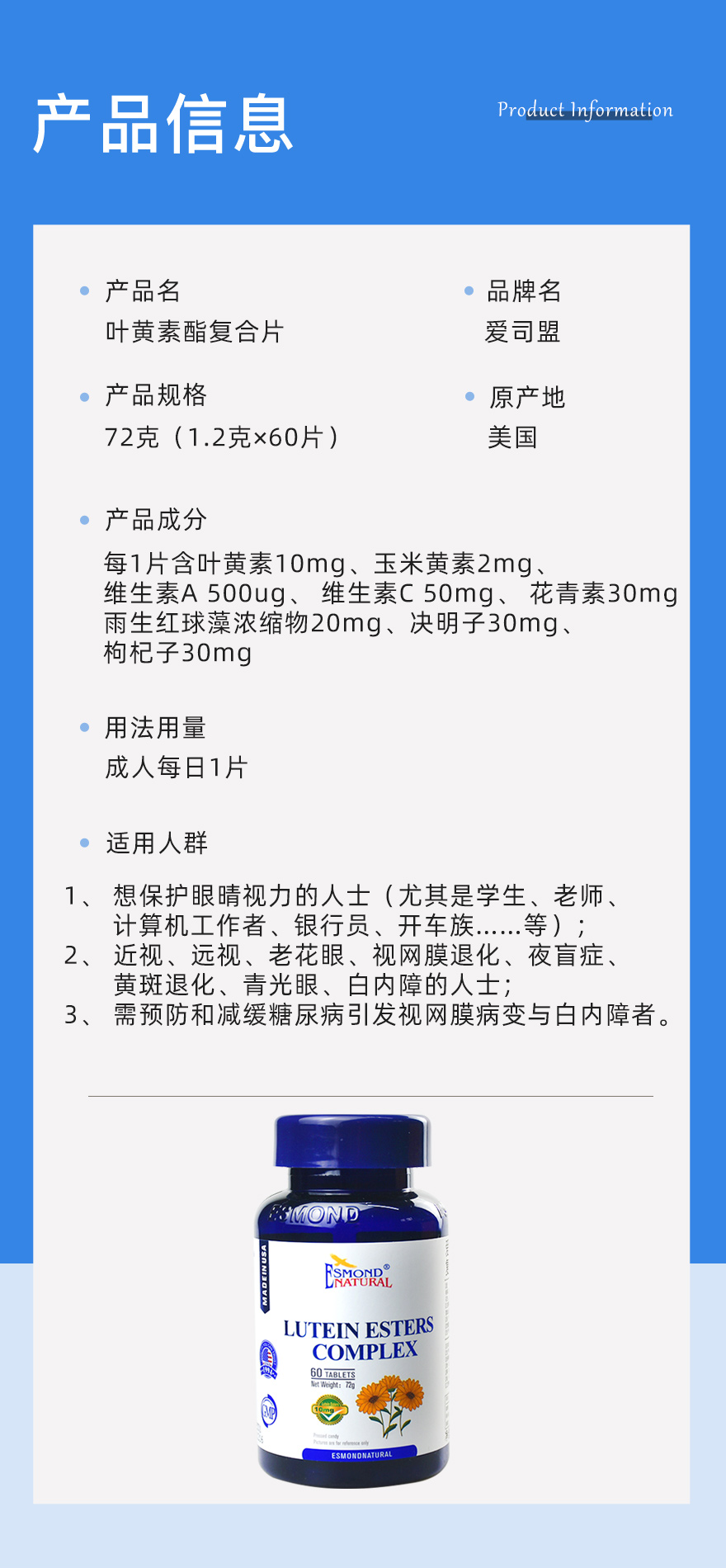 商品名称:爱司盟牌 叶黄素酯复合片 60片/瓶