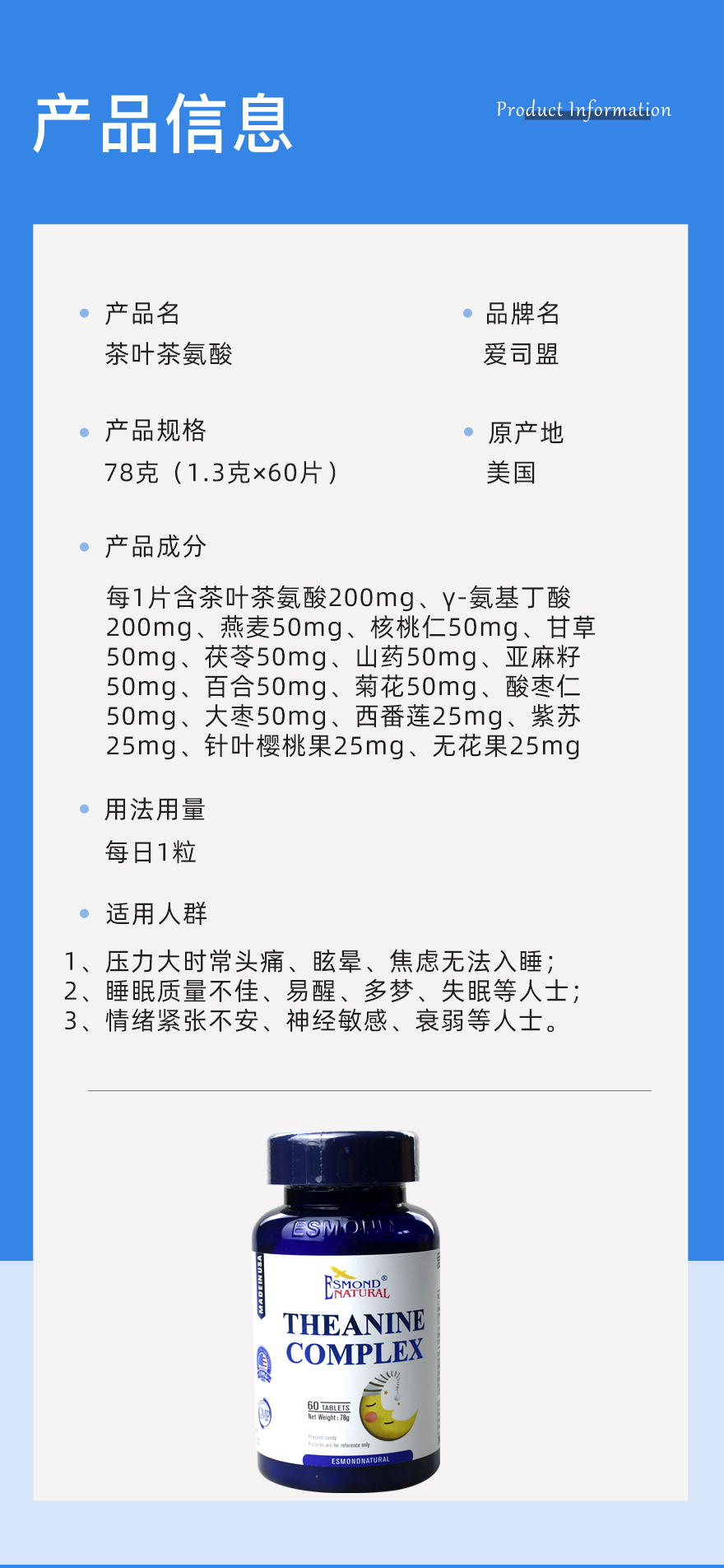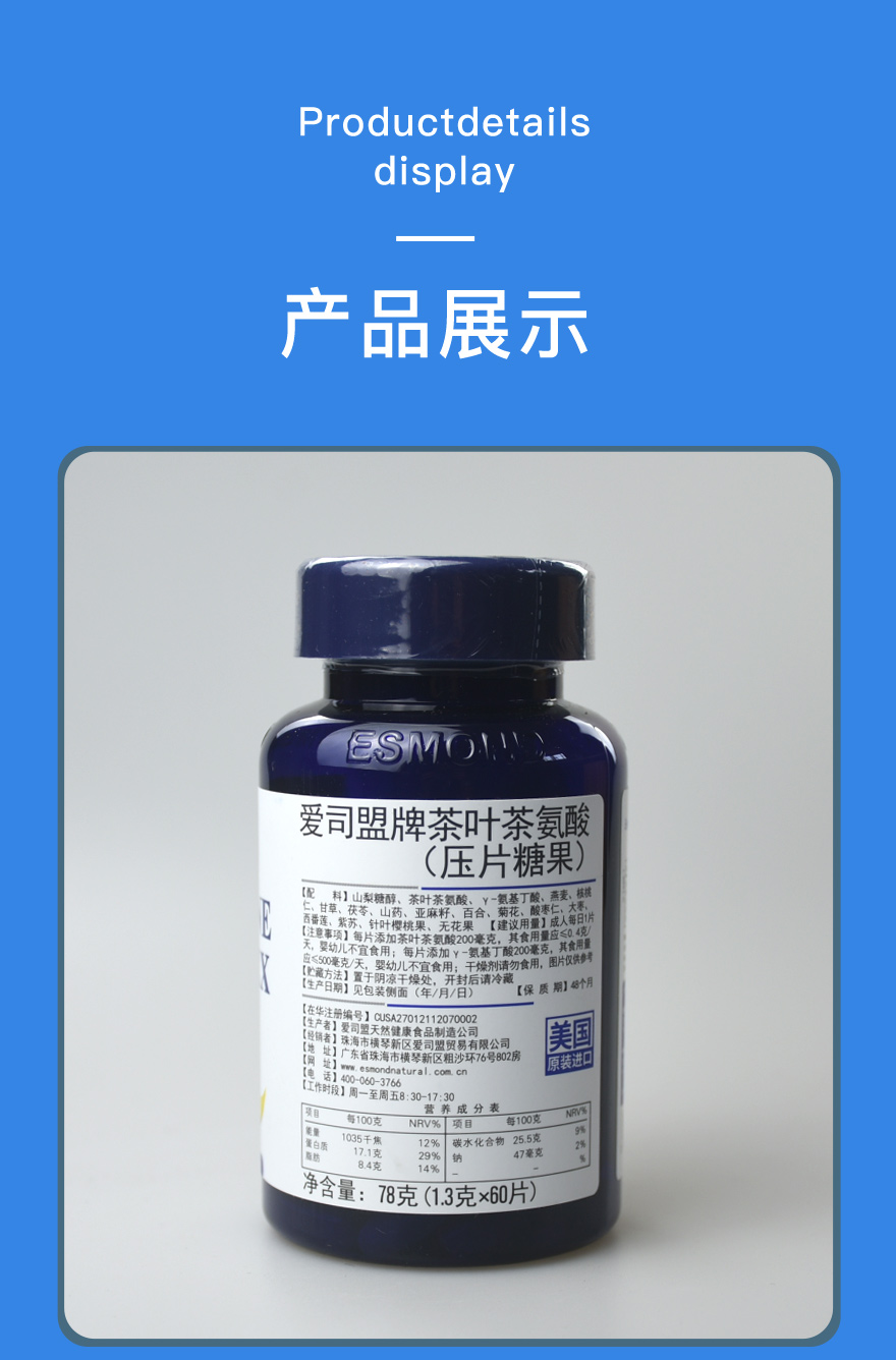 商品名称:爱司盟牌 茶叶茶氨酸 60片/瓶