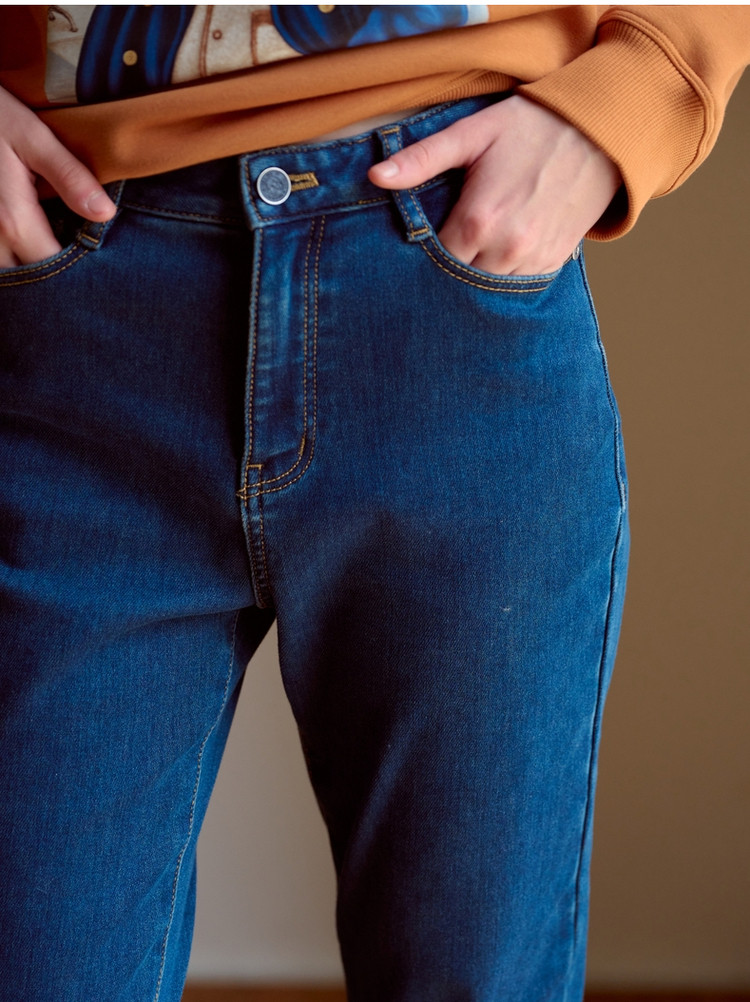 小熊女式牛仔裤秋冬季商场同款保暖弹力舒适小脚裤加绒牛仔裤长裤 053697
