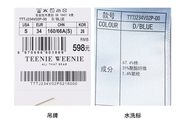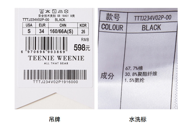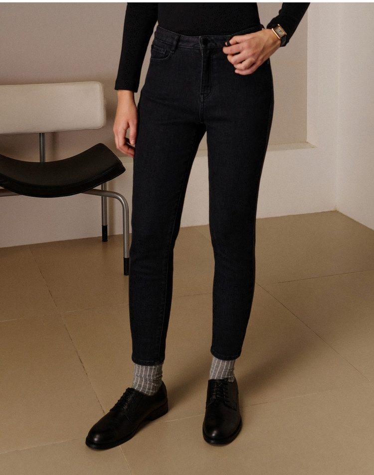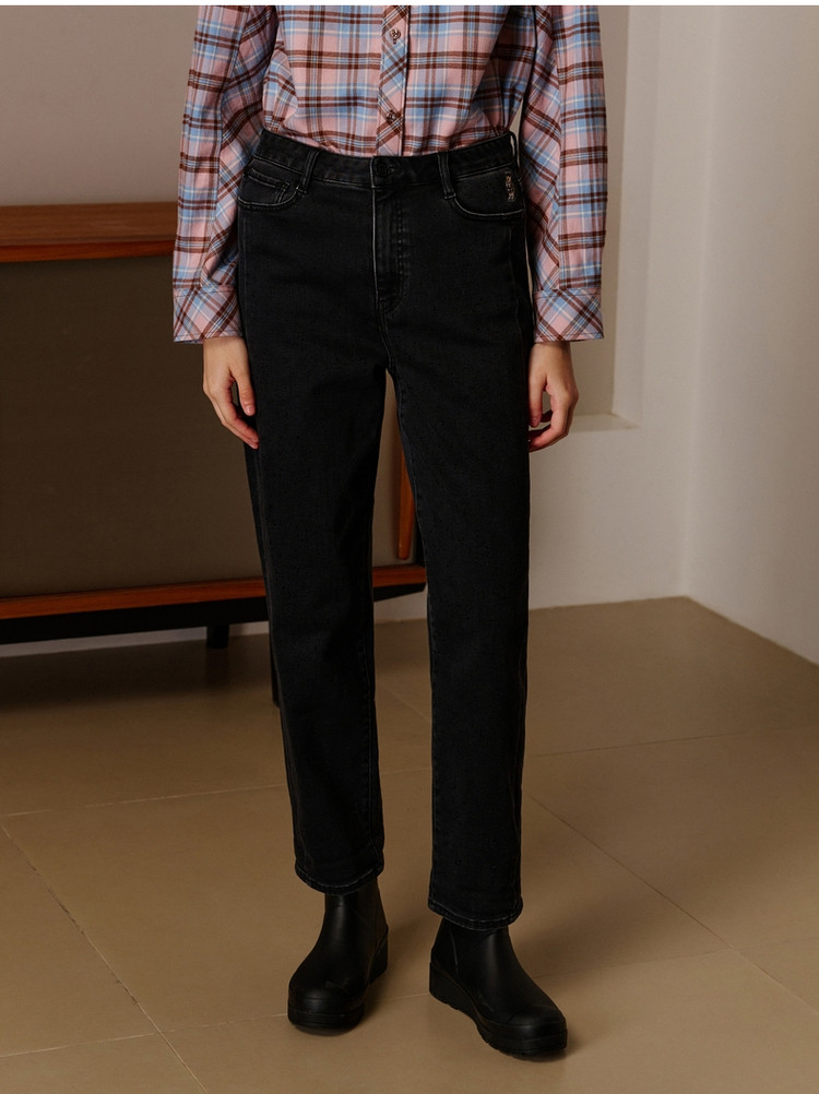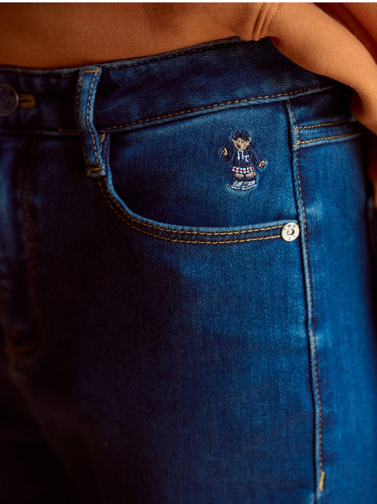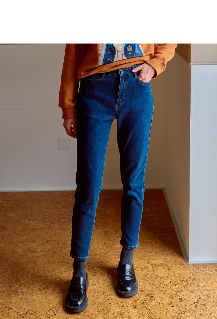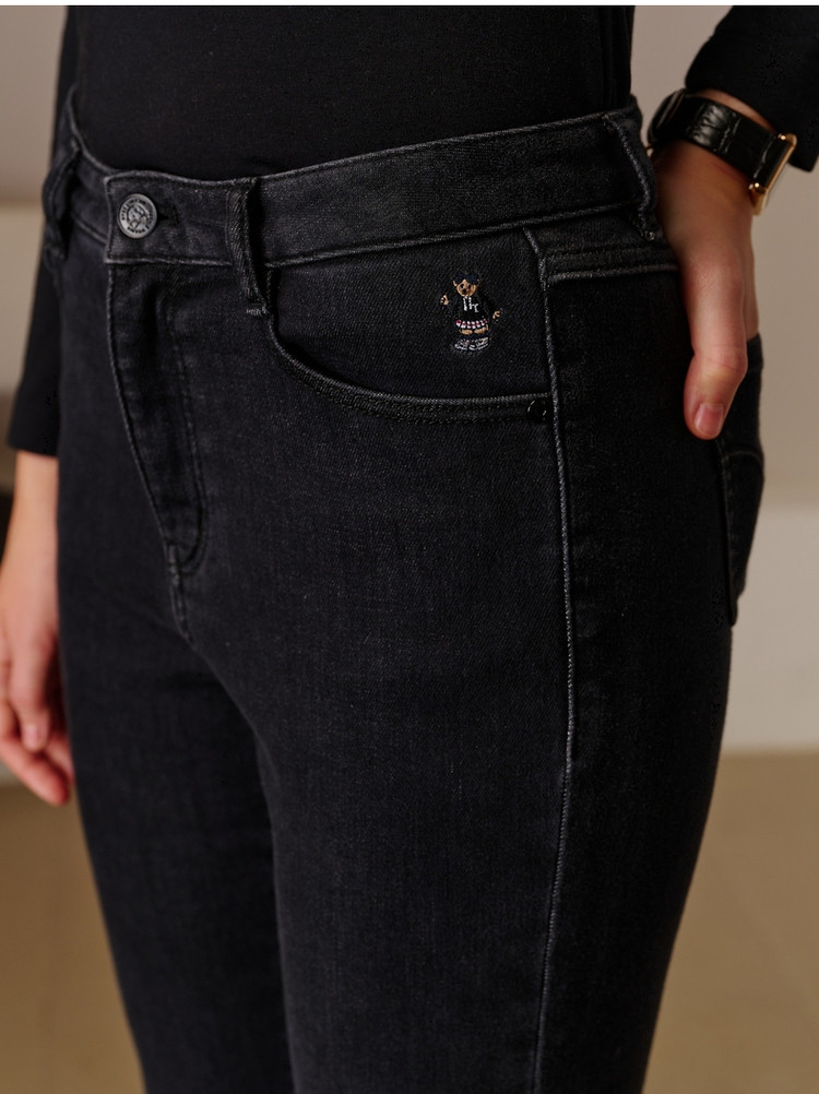商品名称:小熊女式牛仔裤秋冬季商场同款保暖弹力舒适小脚裤加绒牛仔裤长裤 053697