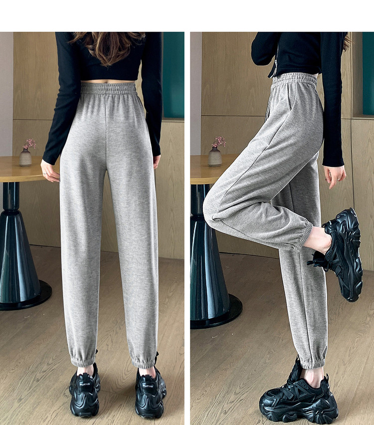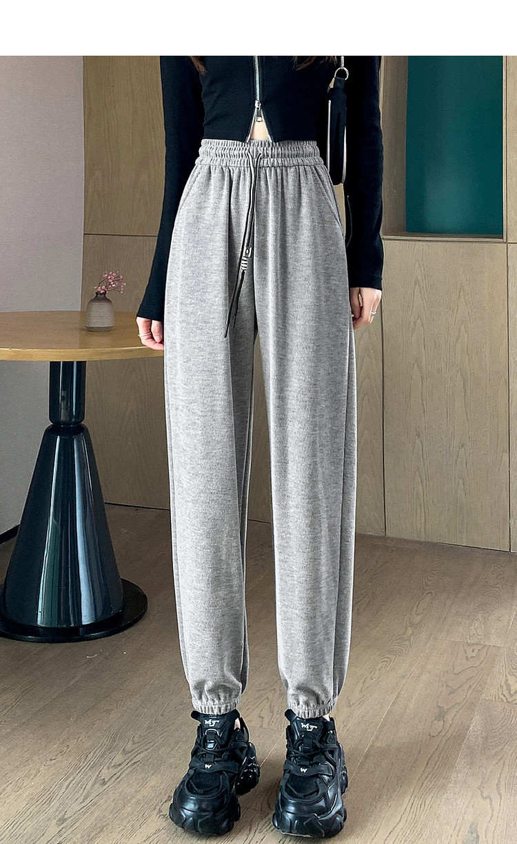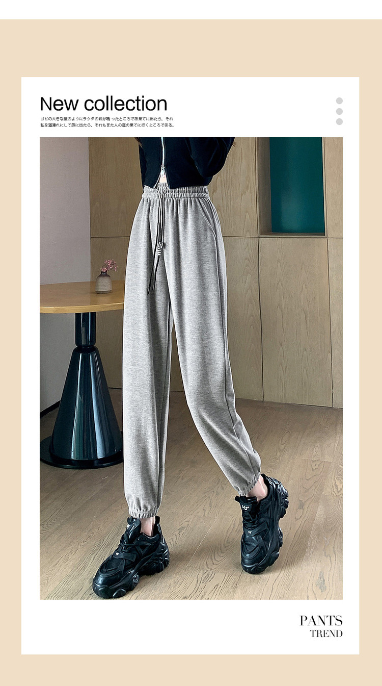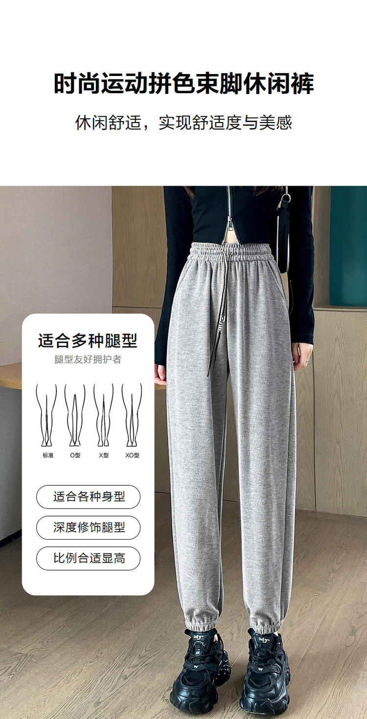 【时尚运动懒人】秋系绳拼色束脚休闲裤字女长裤女裤 665601