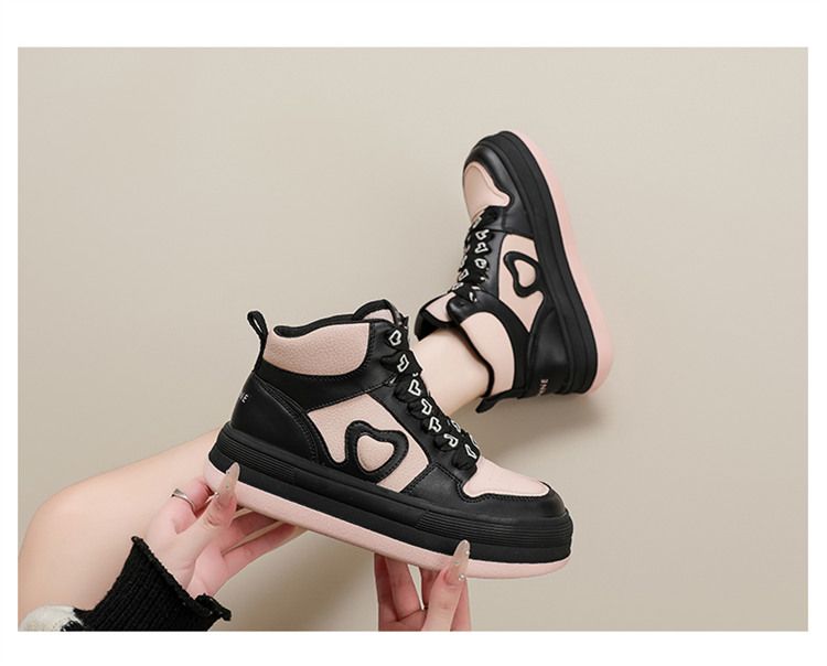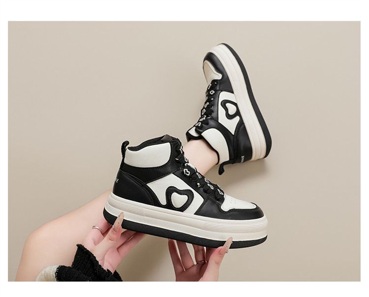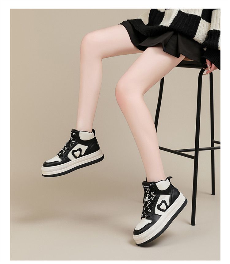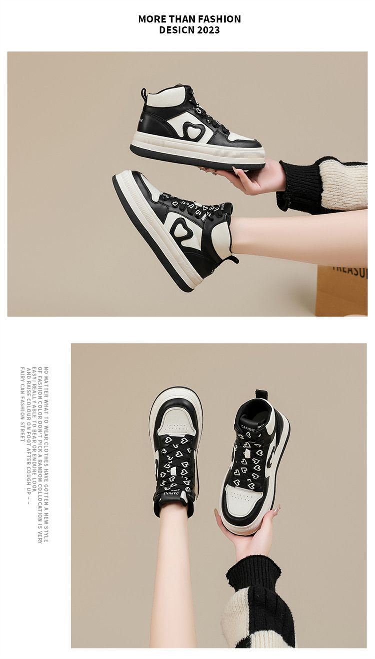 高帮女鞋春夏潮流小白鞋女舒适厚底鞋时尚百搭女休闲运动鞋增高鞋 607639