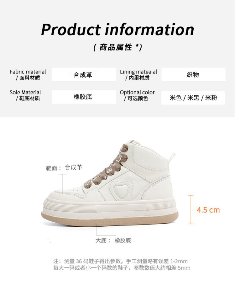 商品名称:高帮女鞋春夏潮流小白鞋女舒适厚底鞋时尚百搭女休闲运动鞋增高鞋 607639