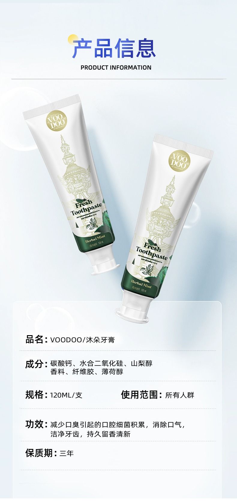 商品名称:VOODOO 清新青草牙膏 120ml