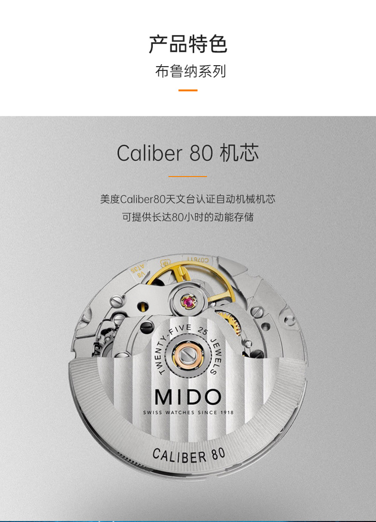 商品名称:MIDO美度 布鲁纳系列长动能全自动机械腕表(不支持无理由退换货)