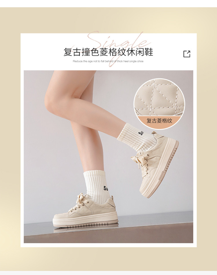 商品名称:【复古菱格】百搭增高厚底鞋运动休闲鞋女春秋季款舒适板鞋女鞋子 797440
