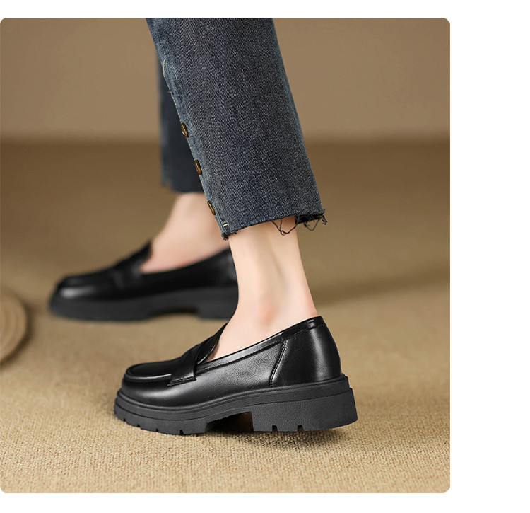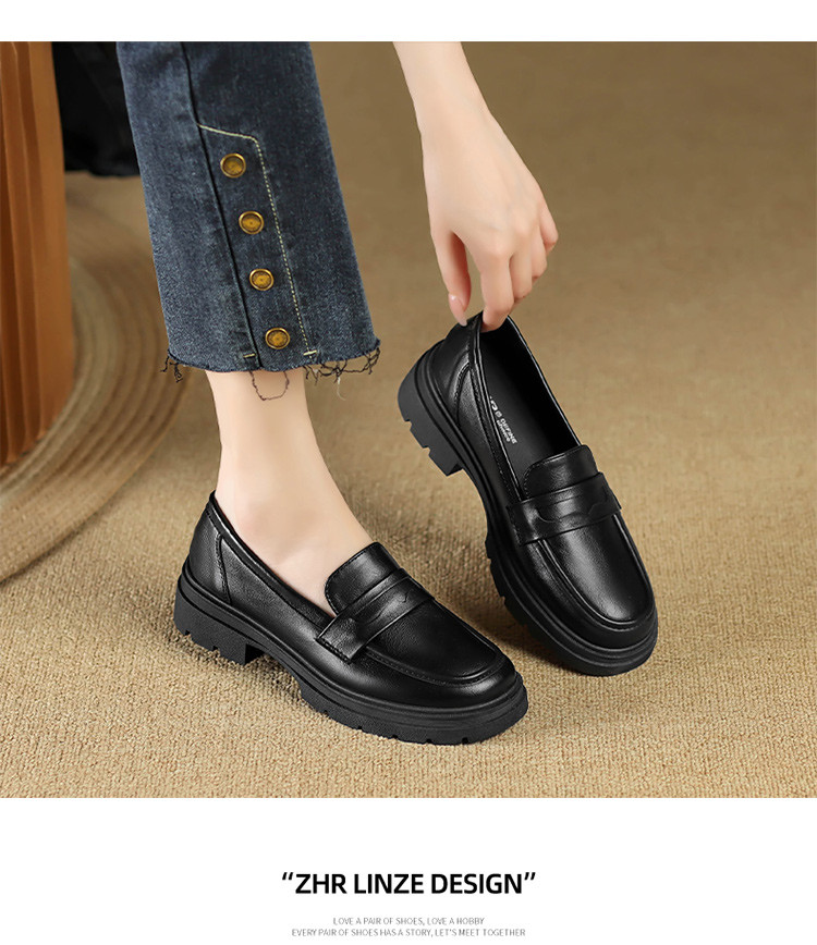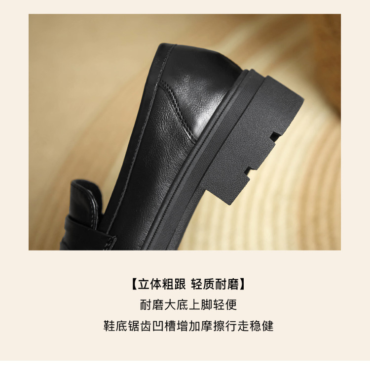 【通勤优选】简约英伦风通勤鞋舒适一脚蹬女鞋粗跟女单鞋乐福鞋女 529920