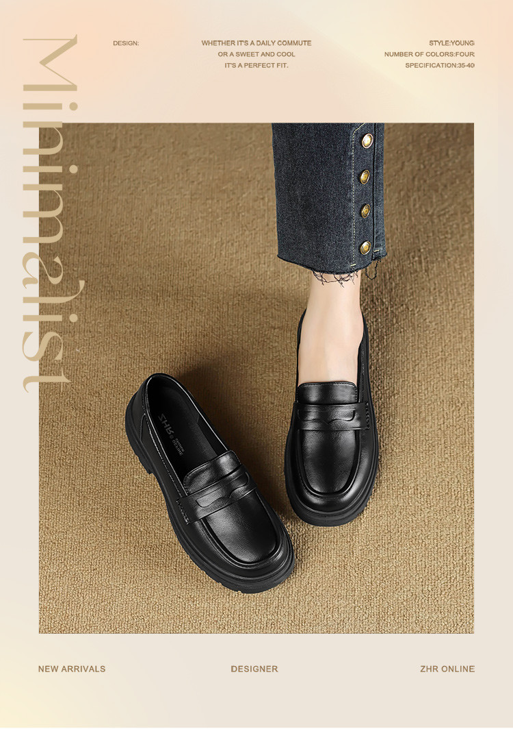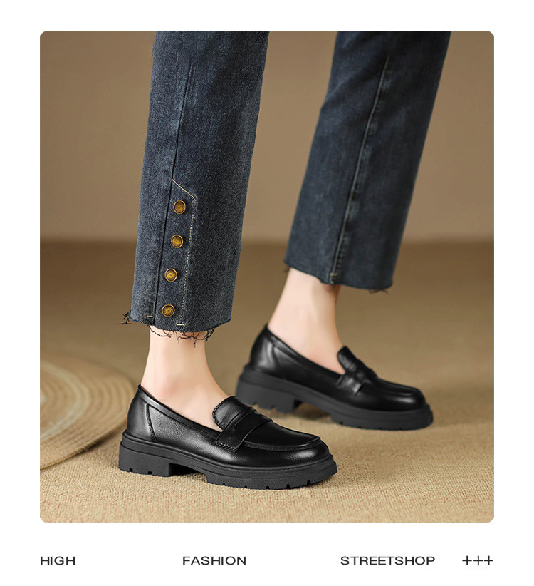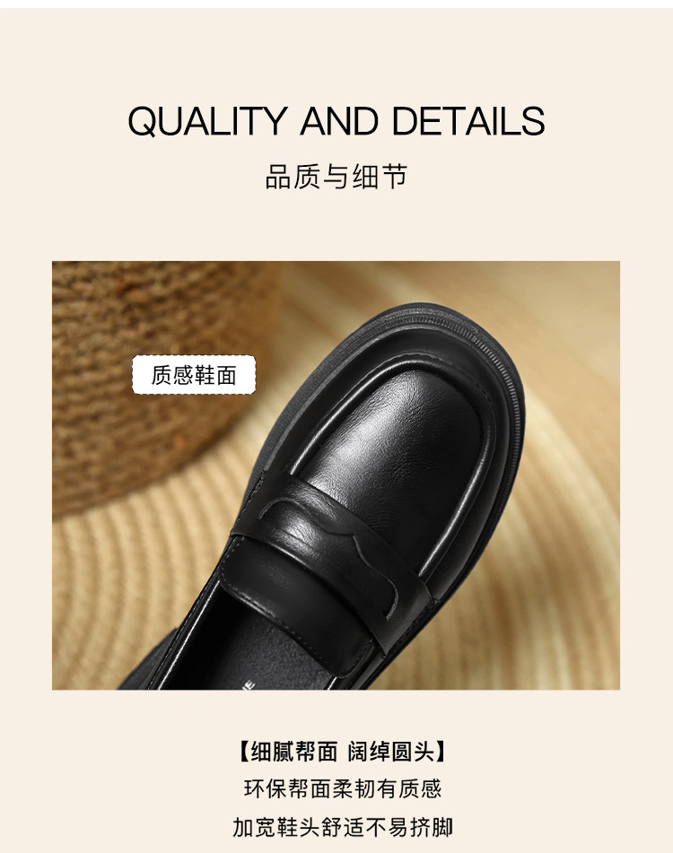 商品名称:【通勤优选】简约英伦风通勤鞋舒适一脚蹬女鞋粗跟女单鞋乐福鞋女 529920