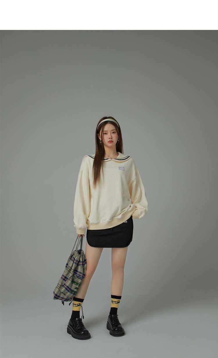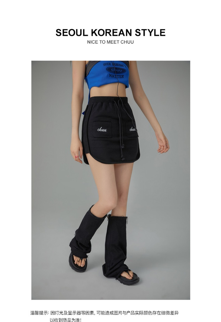 商品名称:CHUU绣花口袋半身裙女秋高腰抽绳运动a字短裙子 885075
