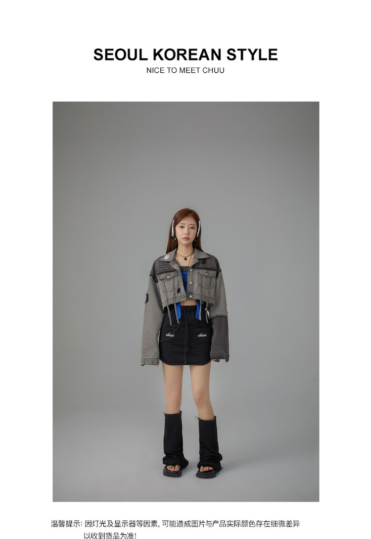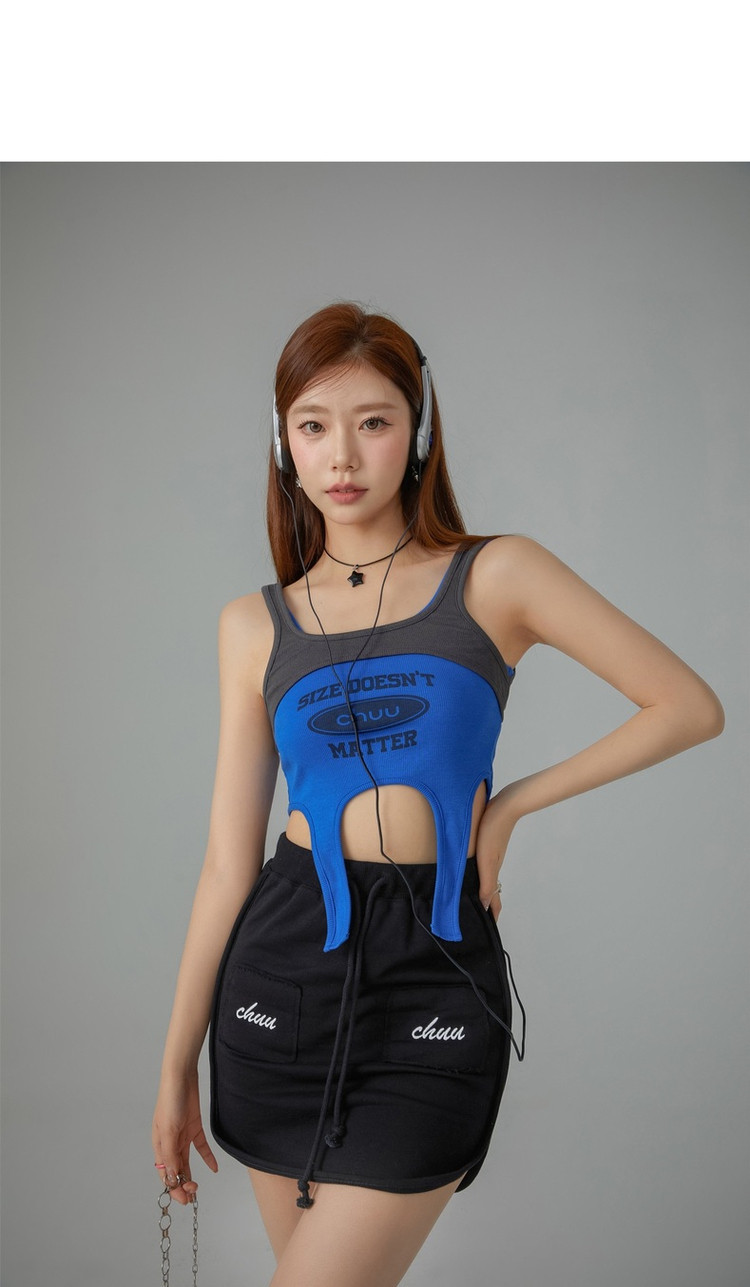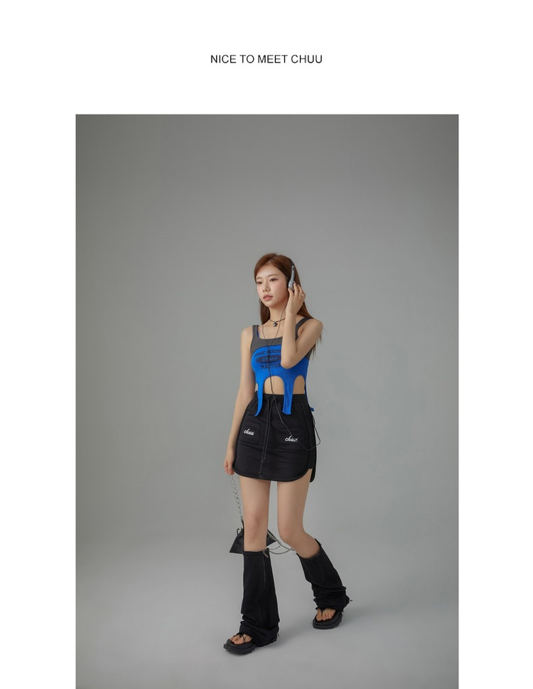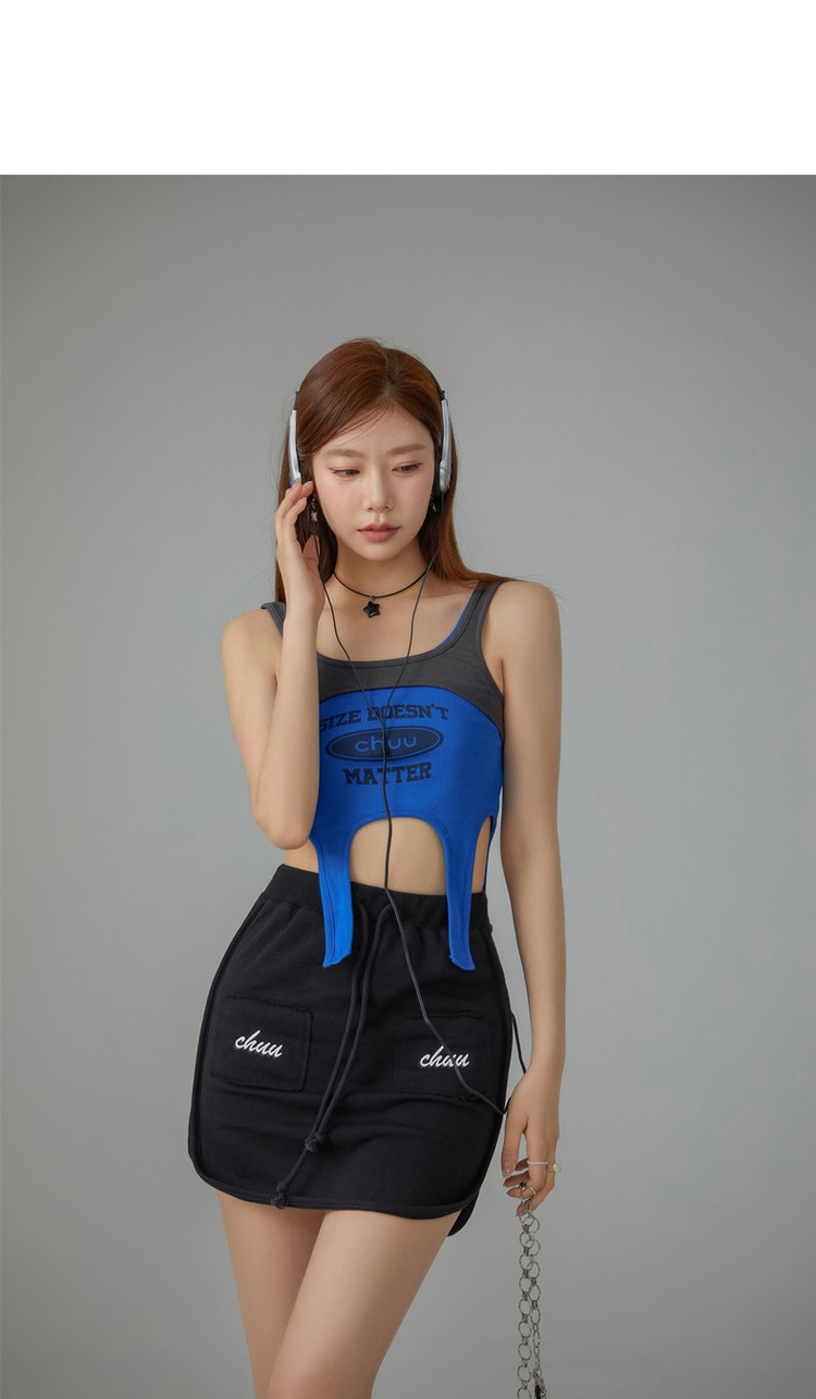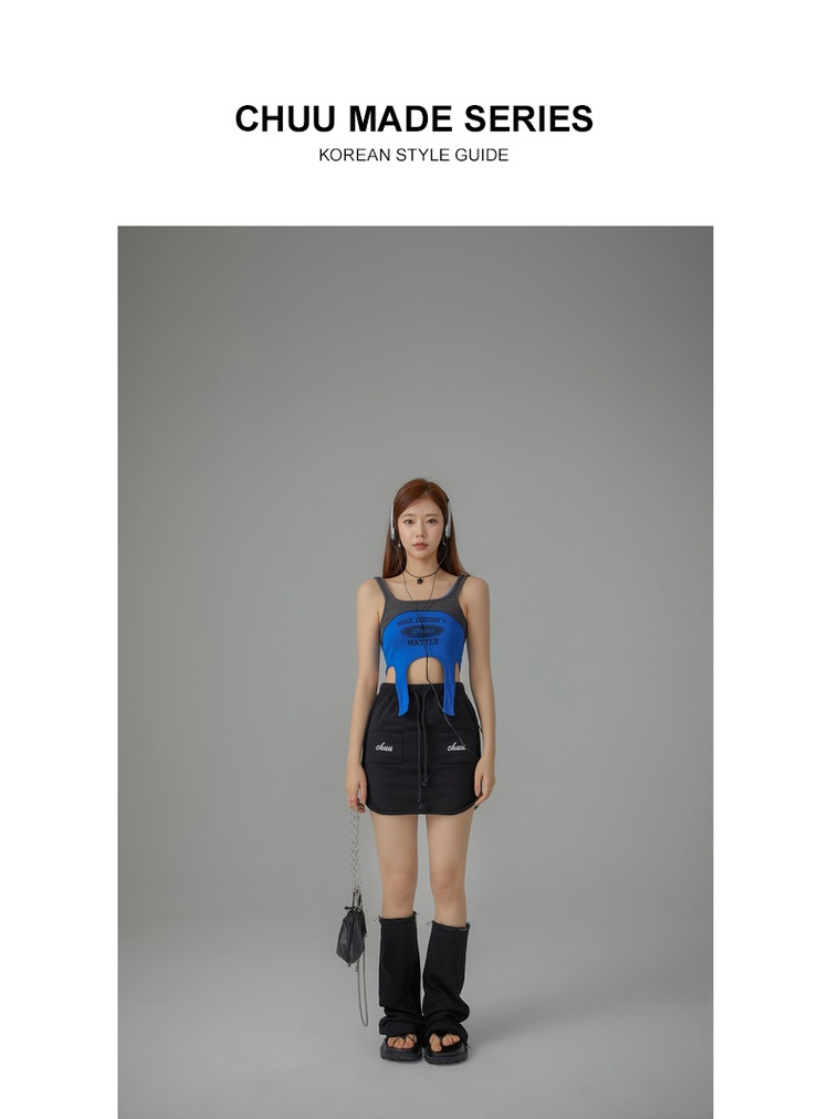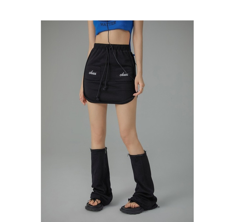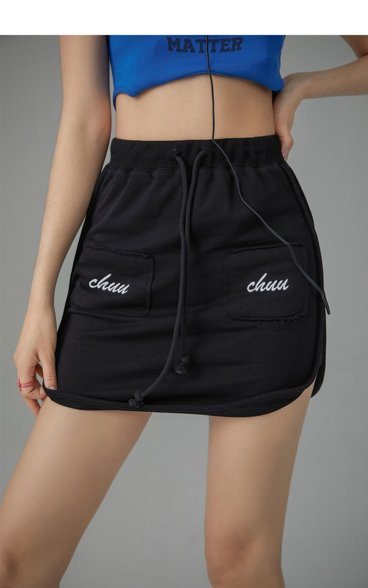 CHUU绣花口袋半身裙女秋高腰抽绳运动a字短裙子 885075