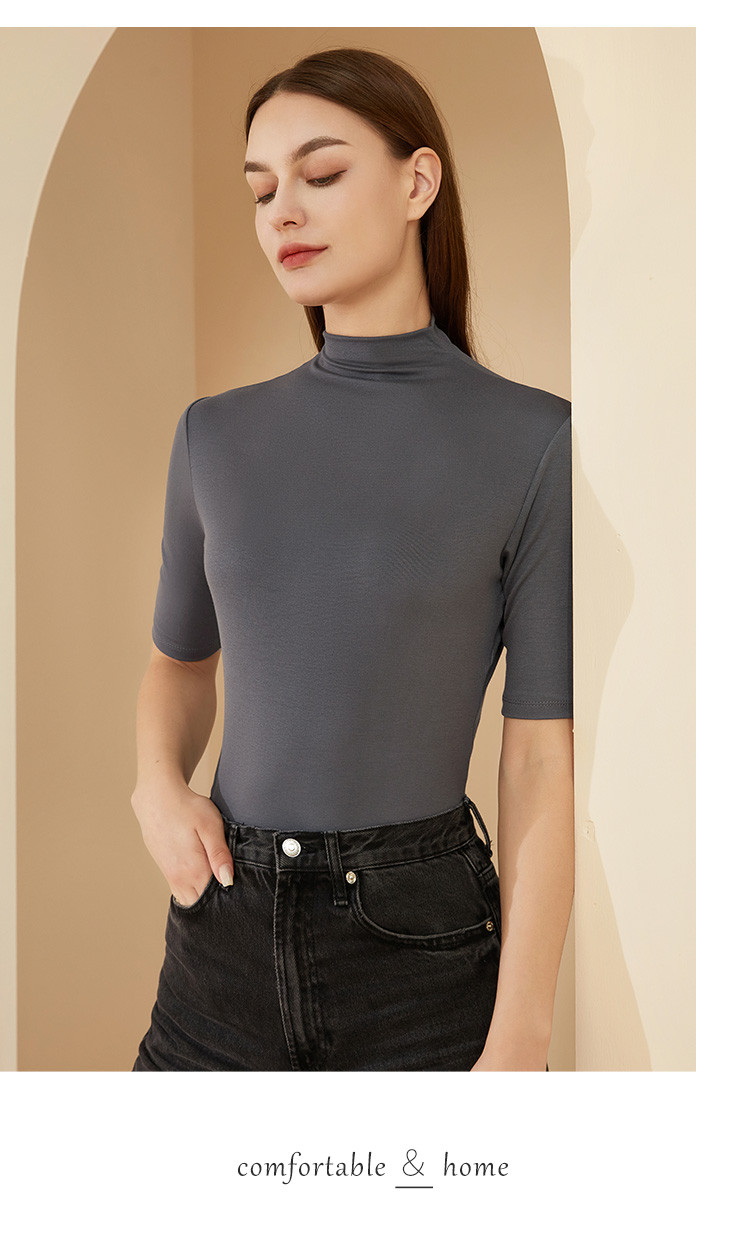 【半高领】舒适柔软亲肤半袖打底衫女大衣内搭春秋细腻时尚可外穿 567563
