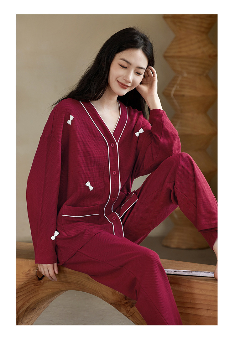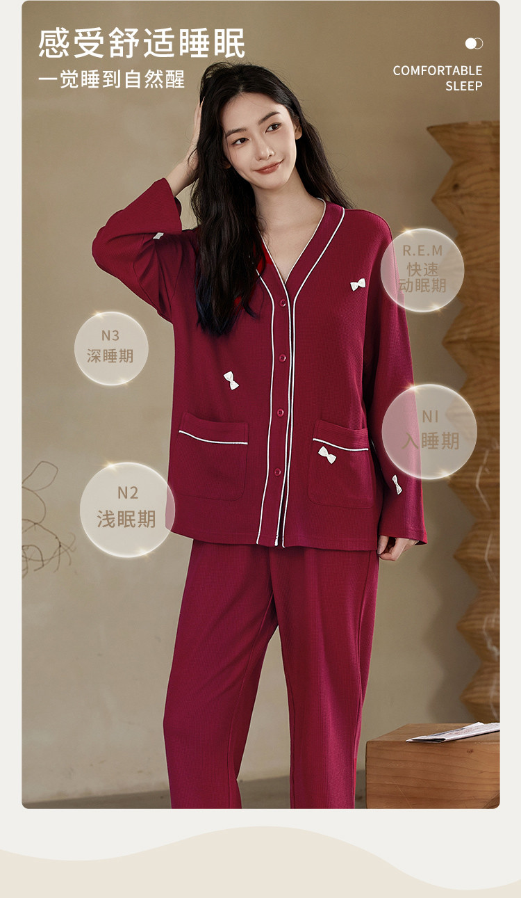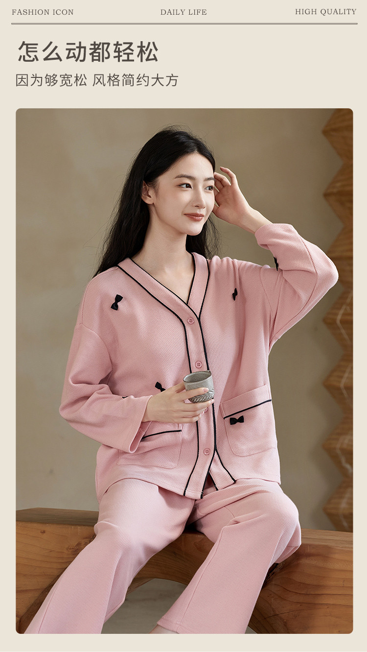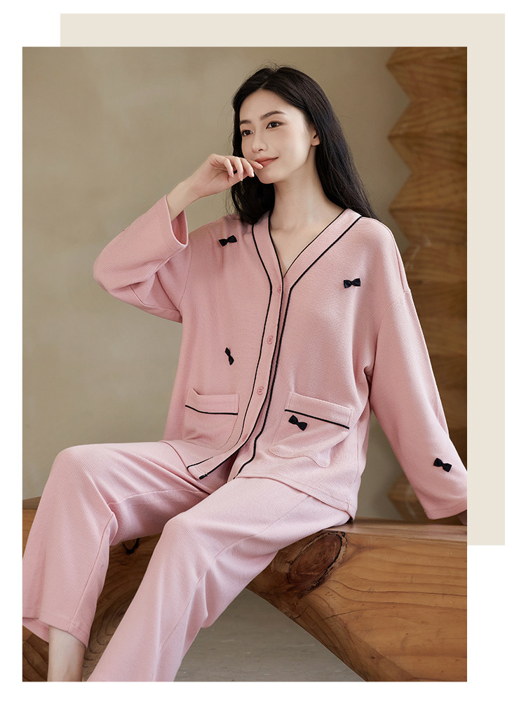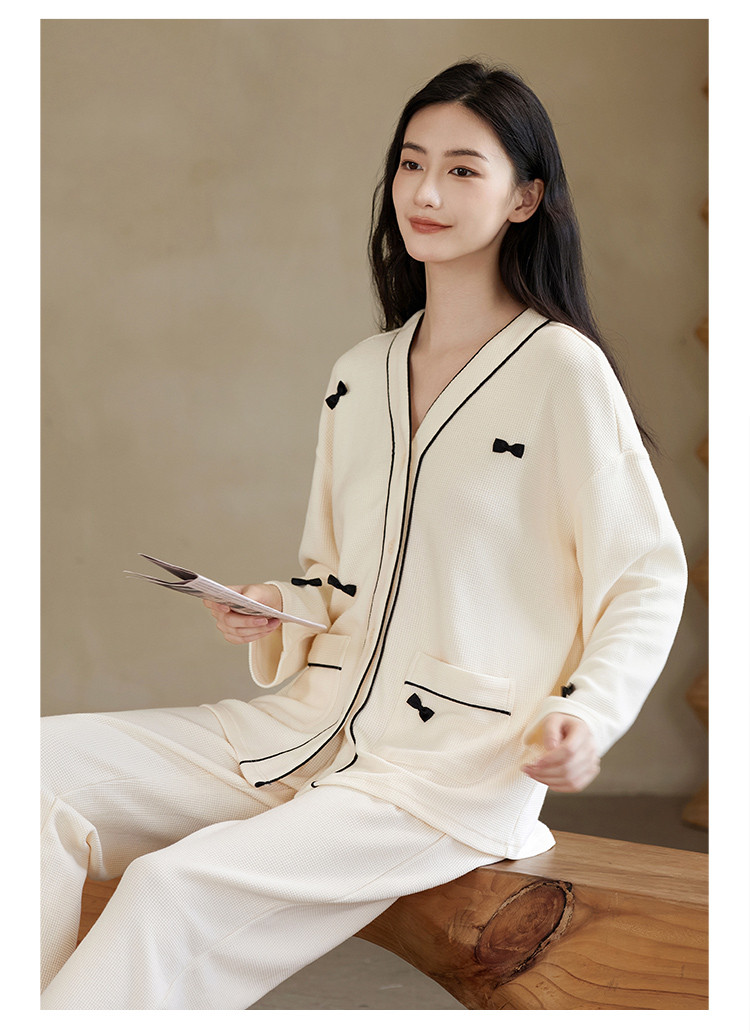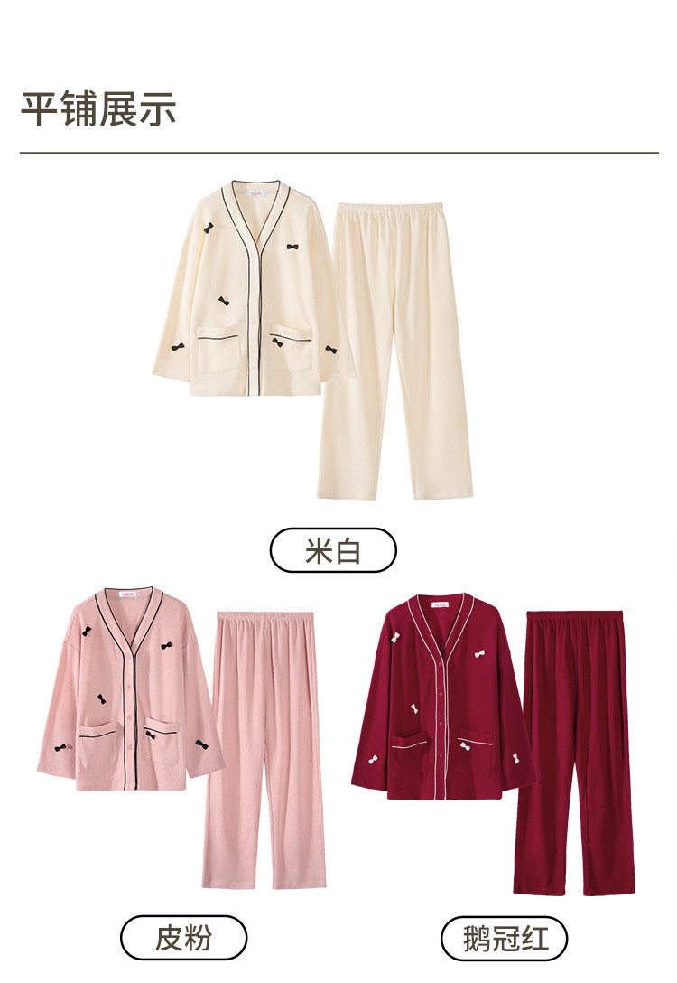 商品名称:【奶油蛋糕】V领蝴蝶夹长袖套装睡衣女棉柔女士家居服舒适柔软 677643