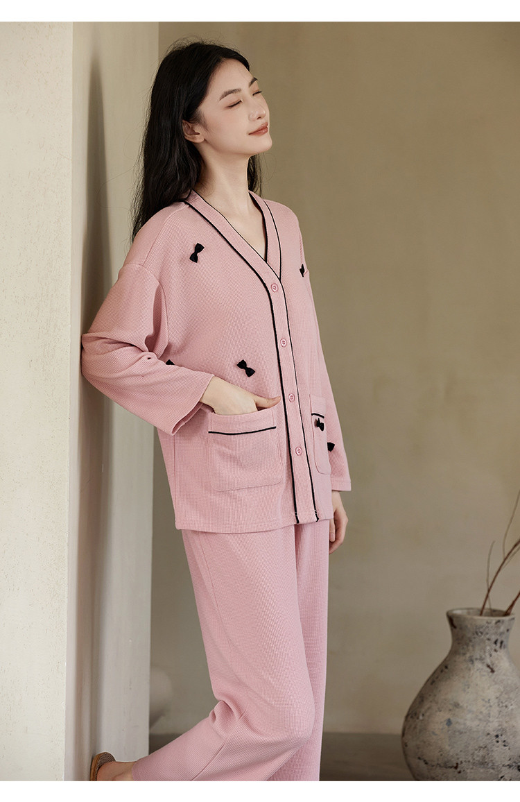 【奶油蛋糕】V领蝴蝶夹长袖套装睡衣女棉柔女士家居服舒适柔软 677643