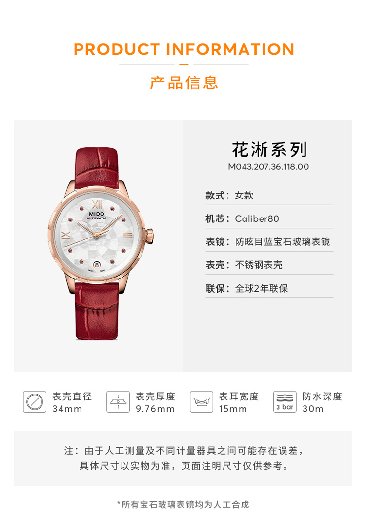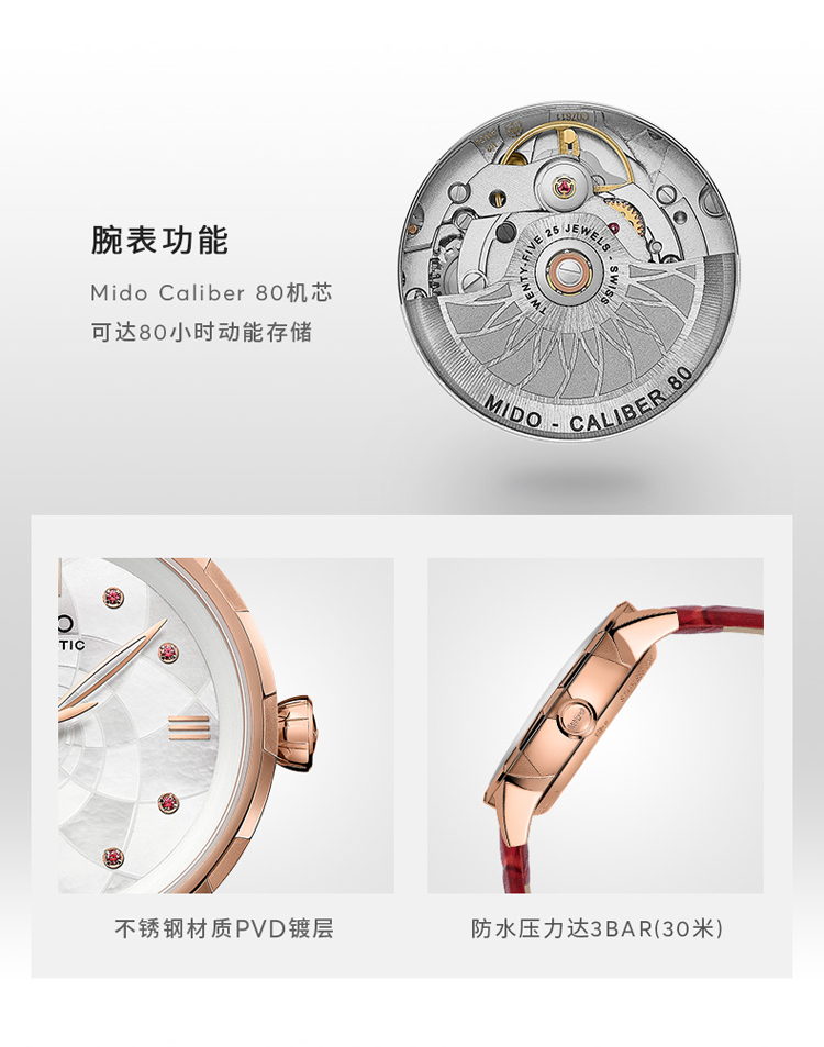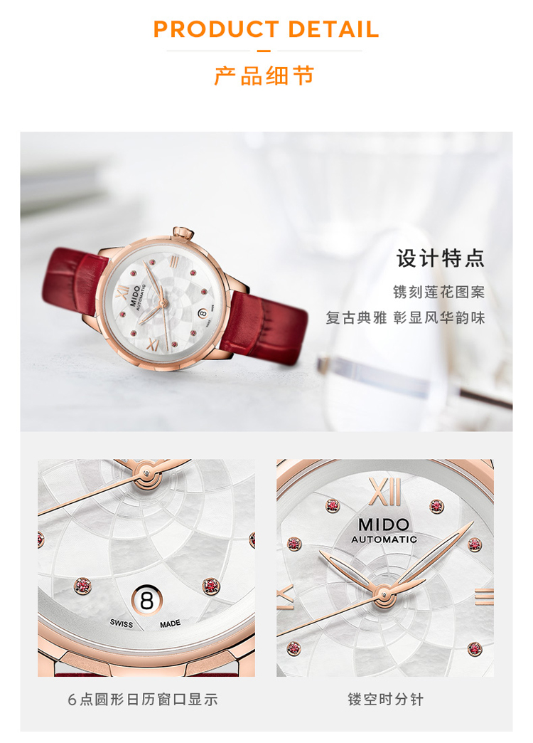 商品名称:MIDO美度 新品花淅系列机械女士腕表(不支持无理由退换货)