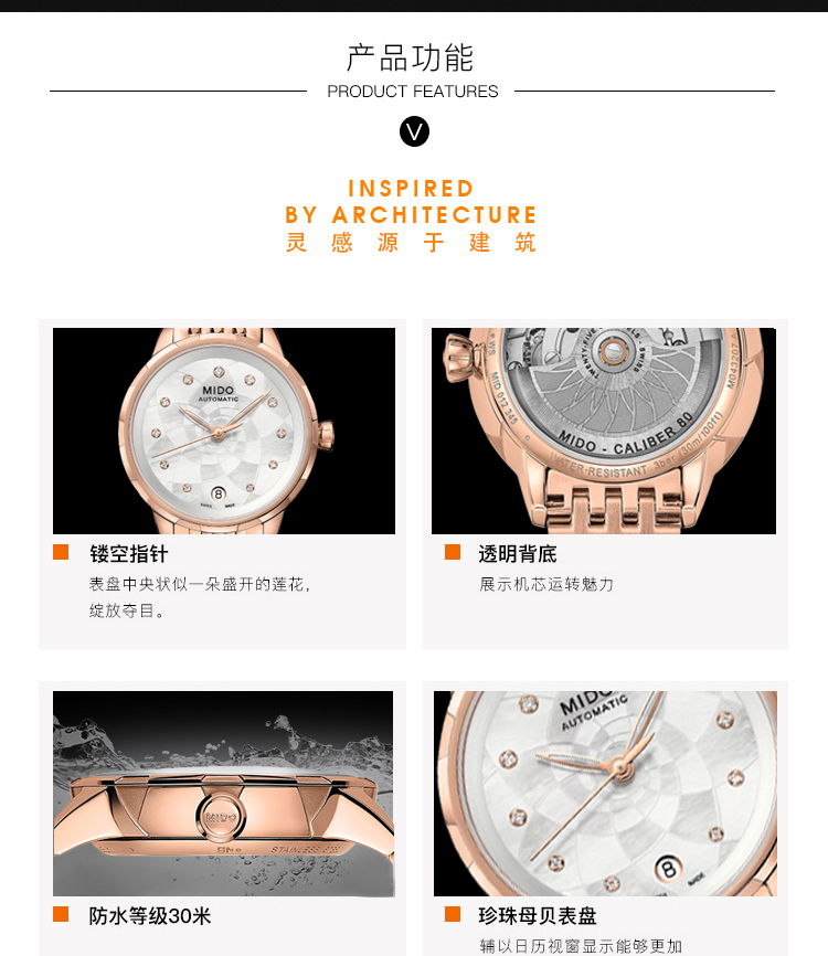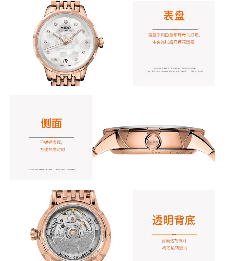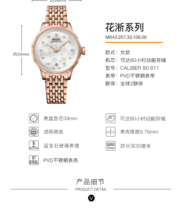 商品名称:MIDO美度 花淅系列长动能女士腕表 (不支持无理由退换货)