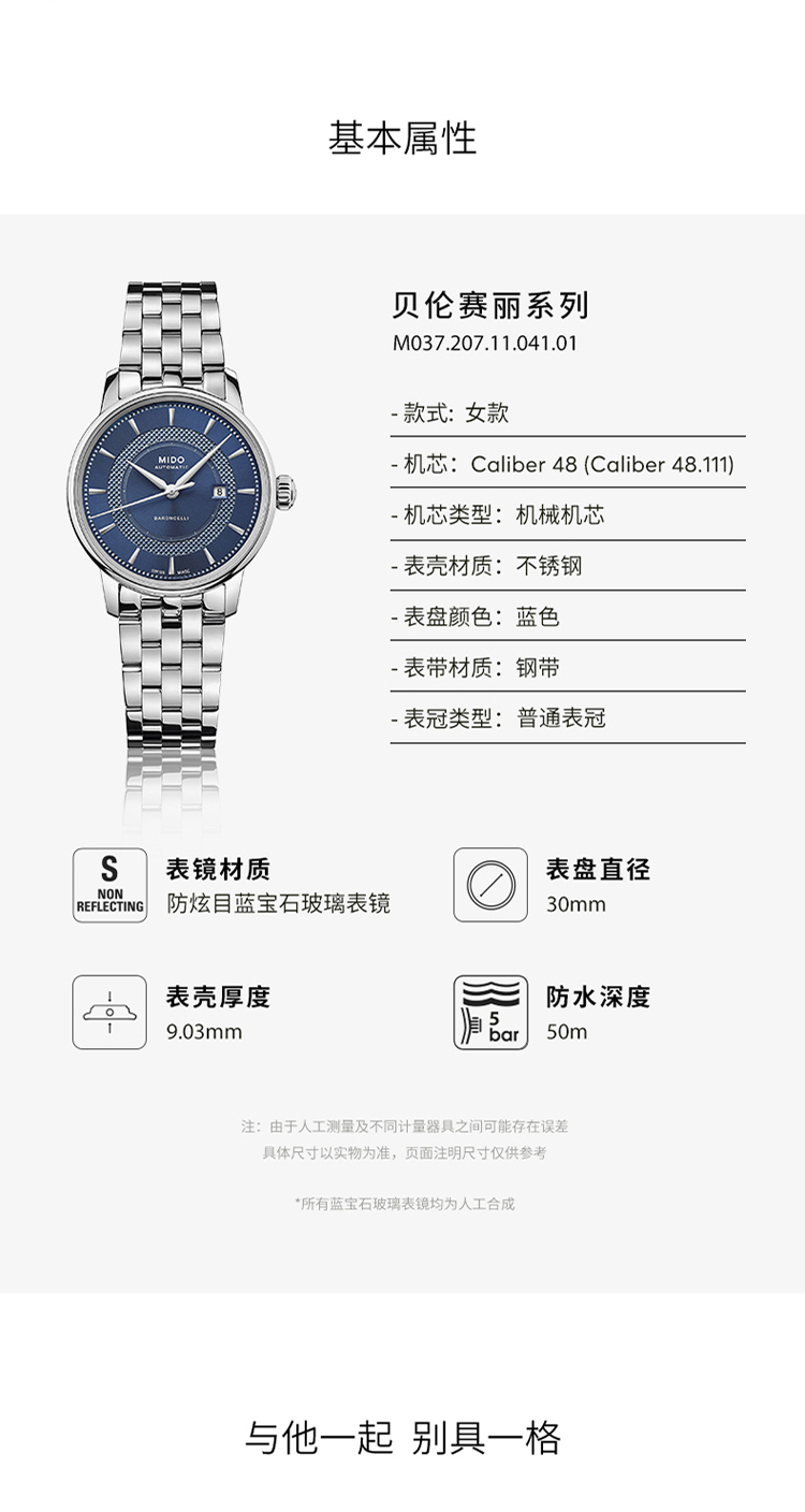 商品名称:MIDO美度 贝伦赛丽系列印记款机械女士腕表 (不支持无理由退换货)