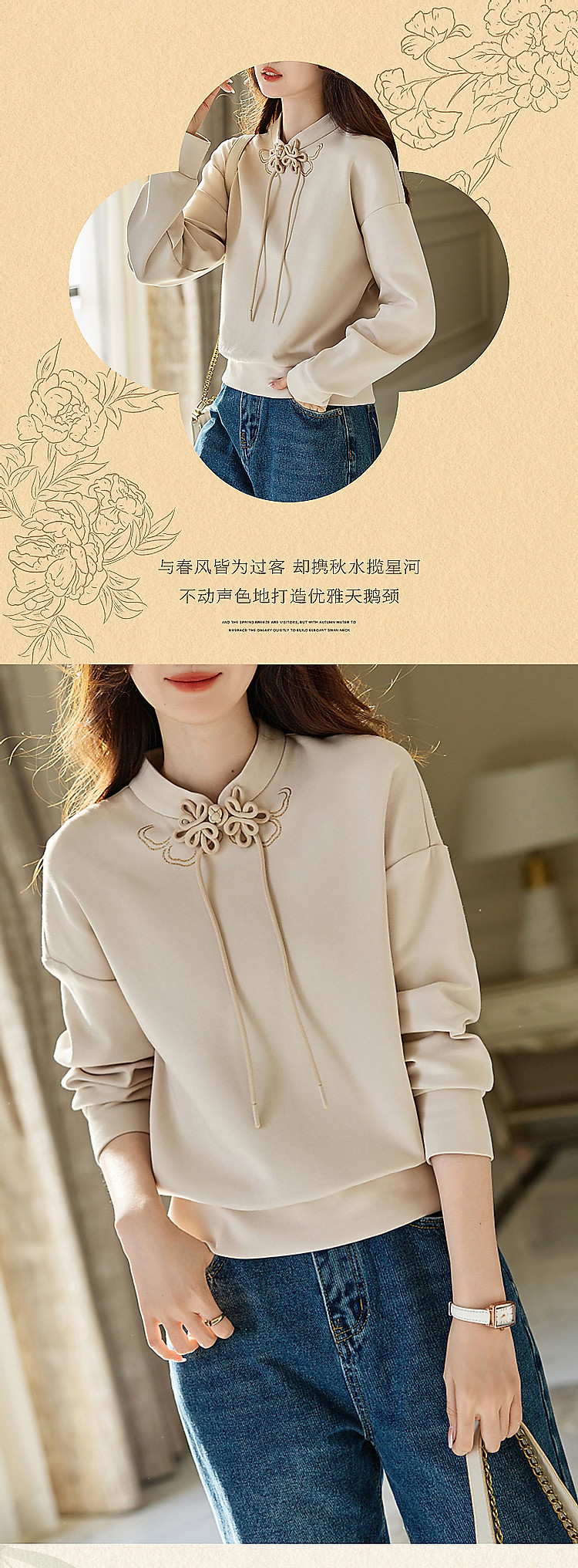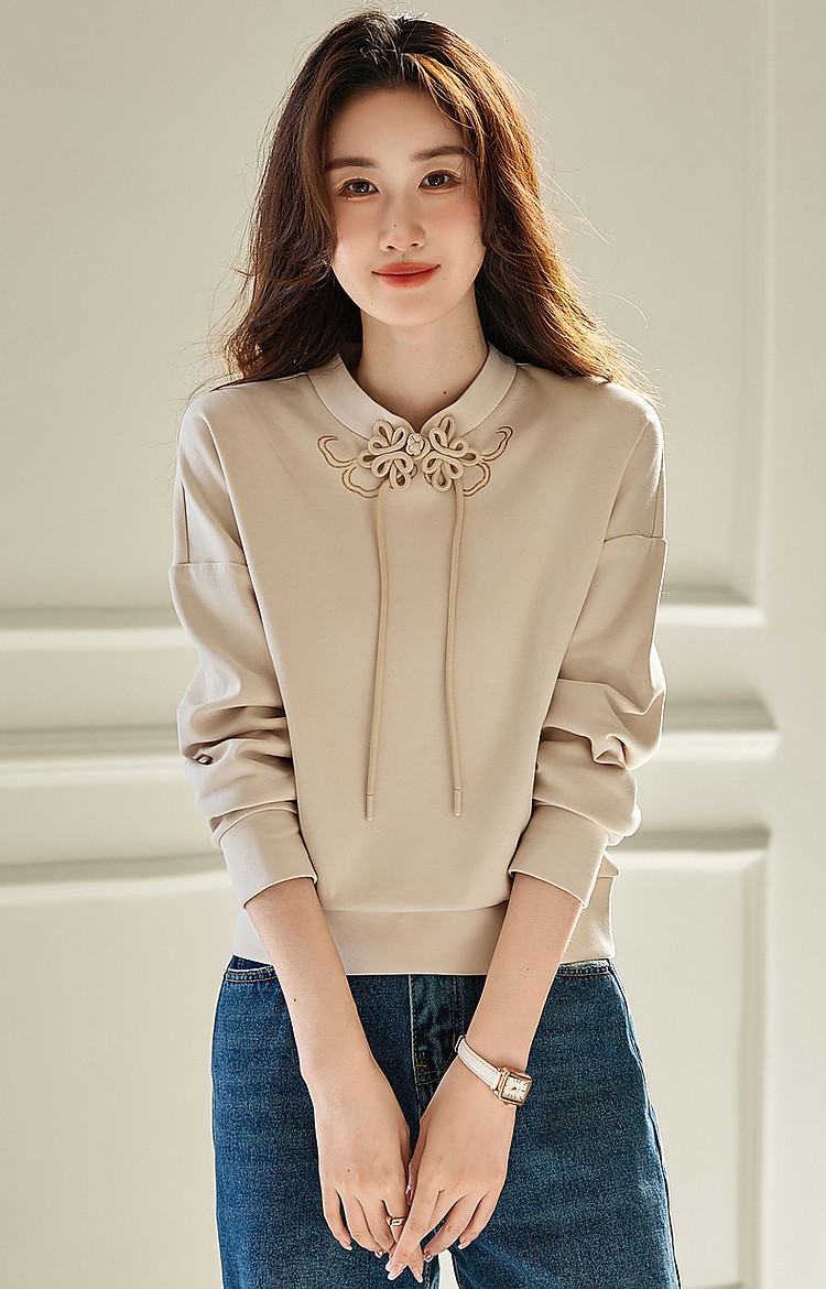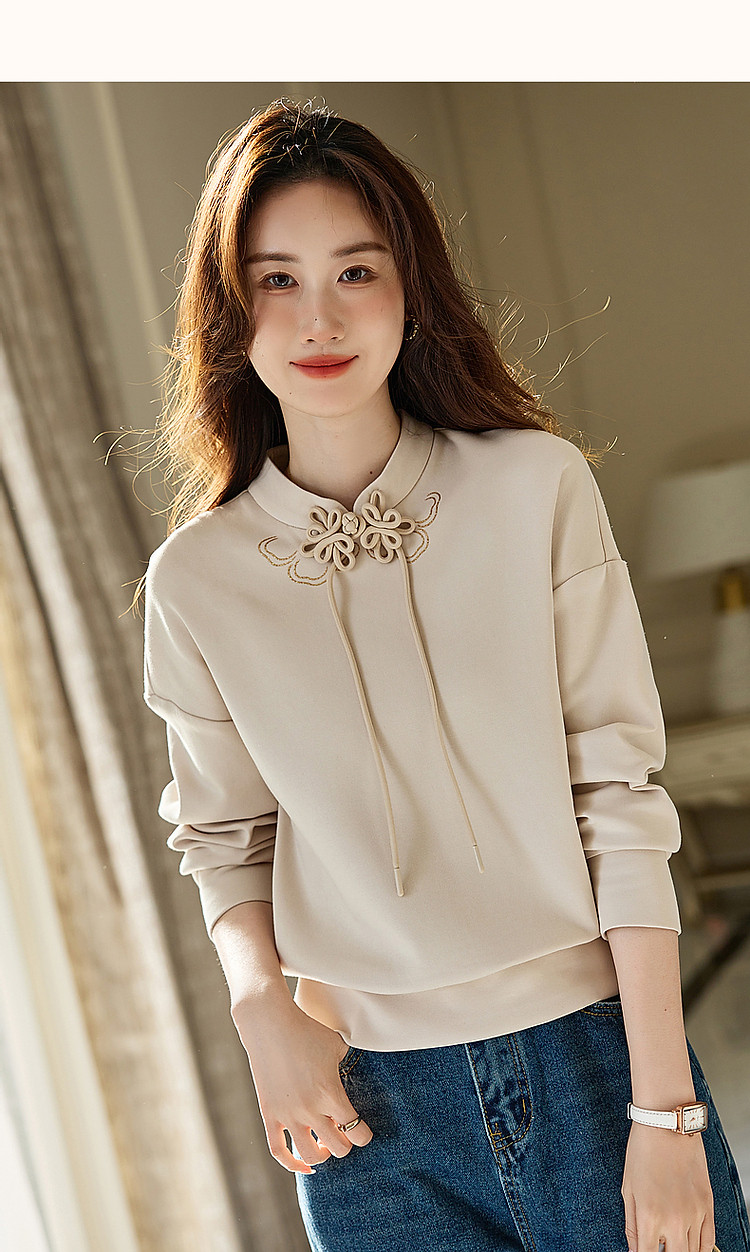 【国风新中式】春秋复古立领精致烫印盘扣舒适空气层卫衣女上衣 699841