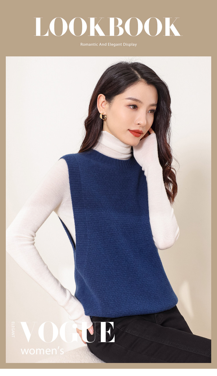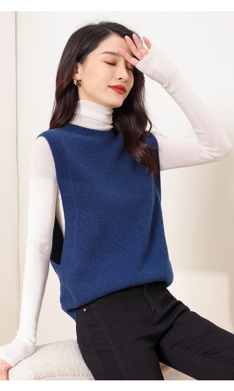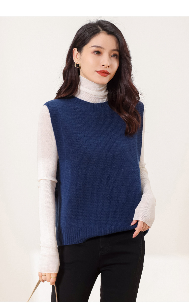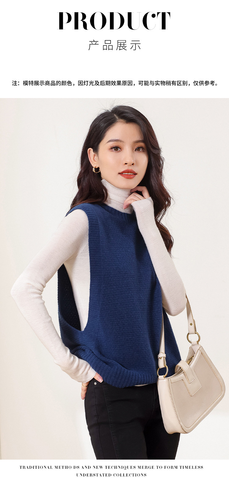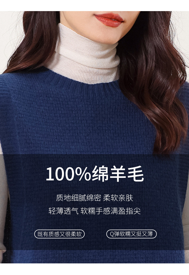 商品名称:【100%绵羊毛 无缝一体工艺】纯色无袖羊毛针织背心马甲女 332115