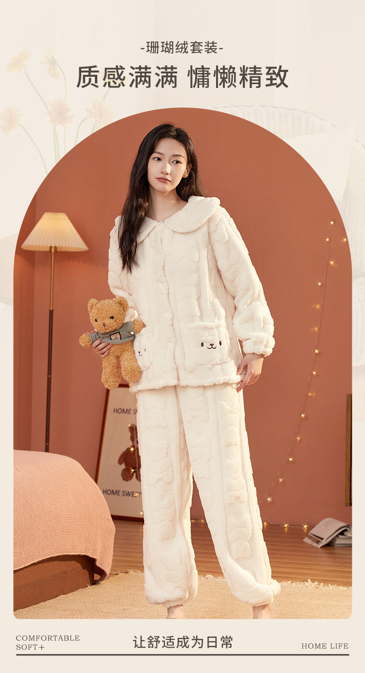商品名称:【软糯珊瑚绒】秋冬甜美可爱睡衣套装女保暖舒适可外穿家居服 067979