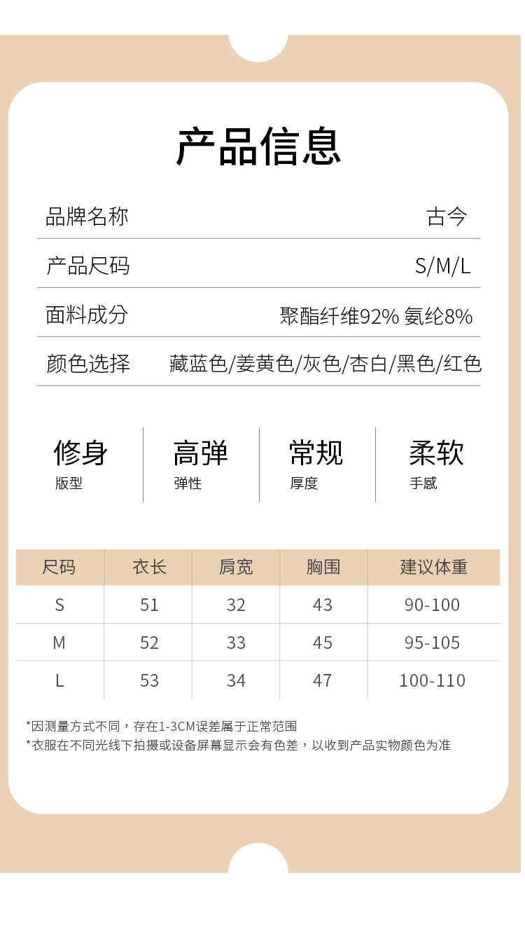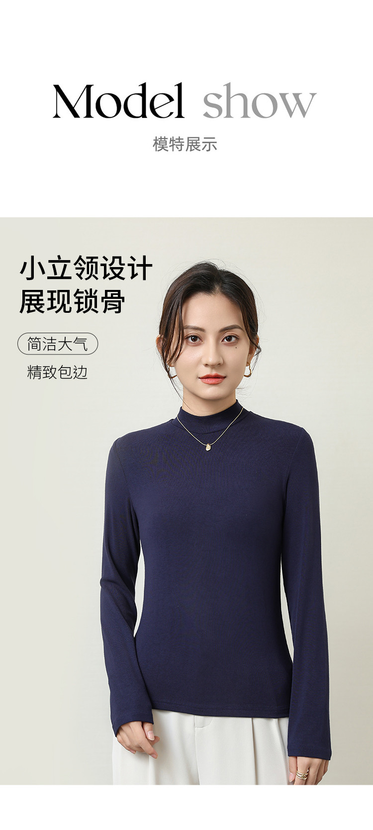商品名称:【修身显瘦】秋冬打底衫小立领女士保暖内衣西装内搭纯色长袖上衣 272907
