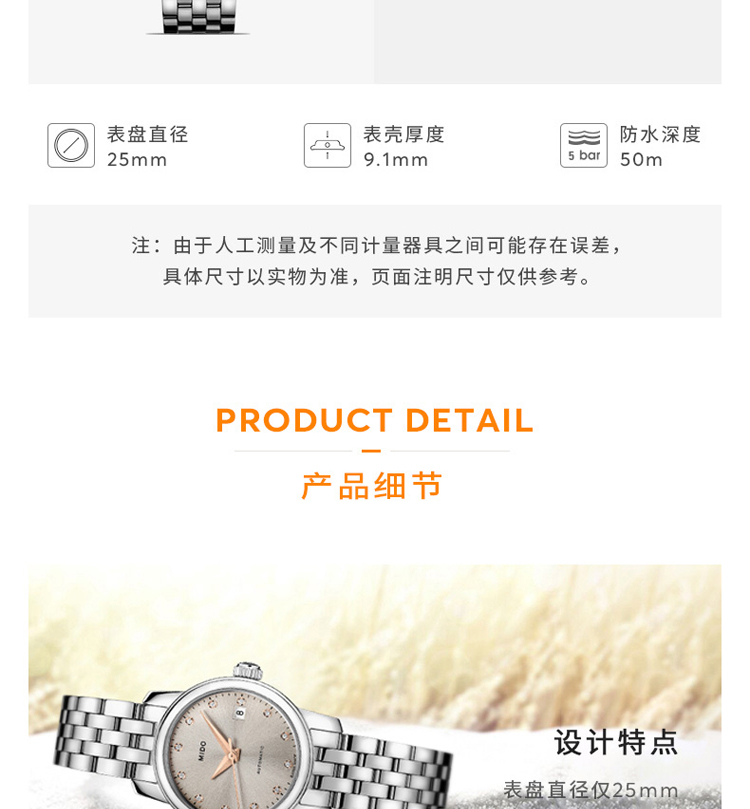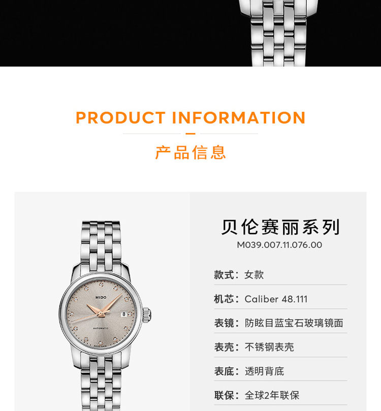 商品名称:MIDO美度 贝伦赛丽系列迷你小表盘女士腕表 (不支持无理由退换货)