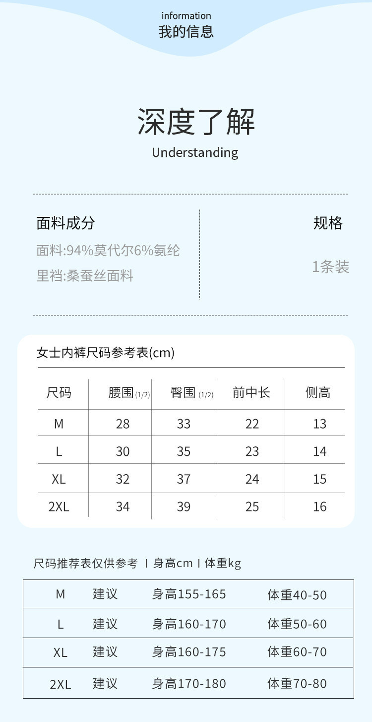 商品名称:【轻奢莫代尔 5A抑菌】桑蚕丝档女内衣无痕大码女士内裤女 295179