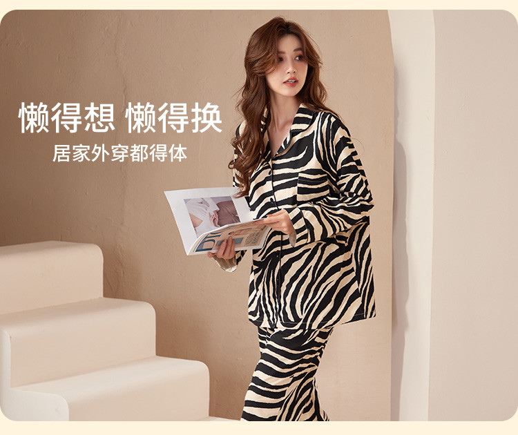 商品名称:【100%棉】可外穿翻领开衫睡衣女士春秋款高级感家居服套装 696715