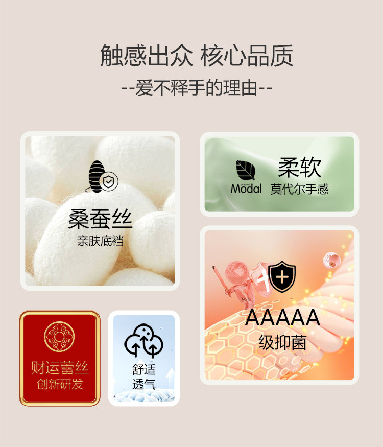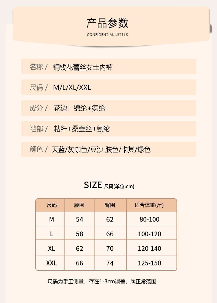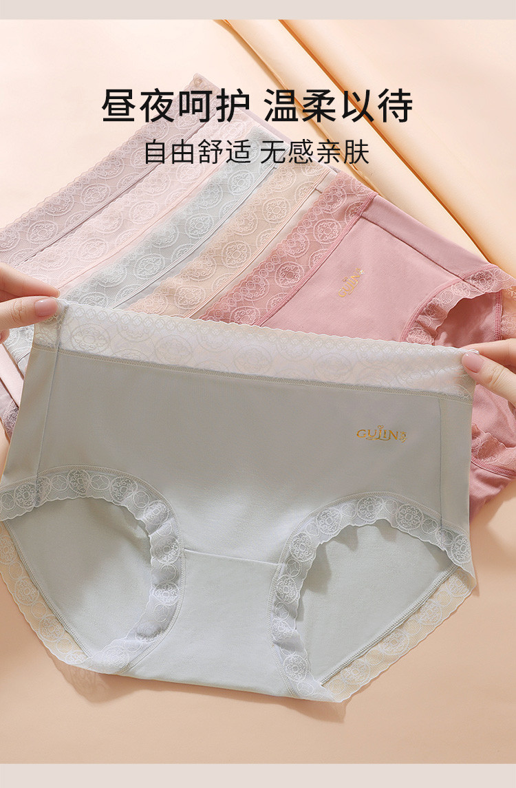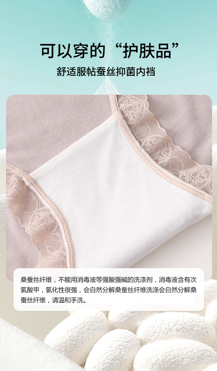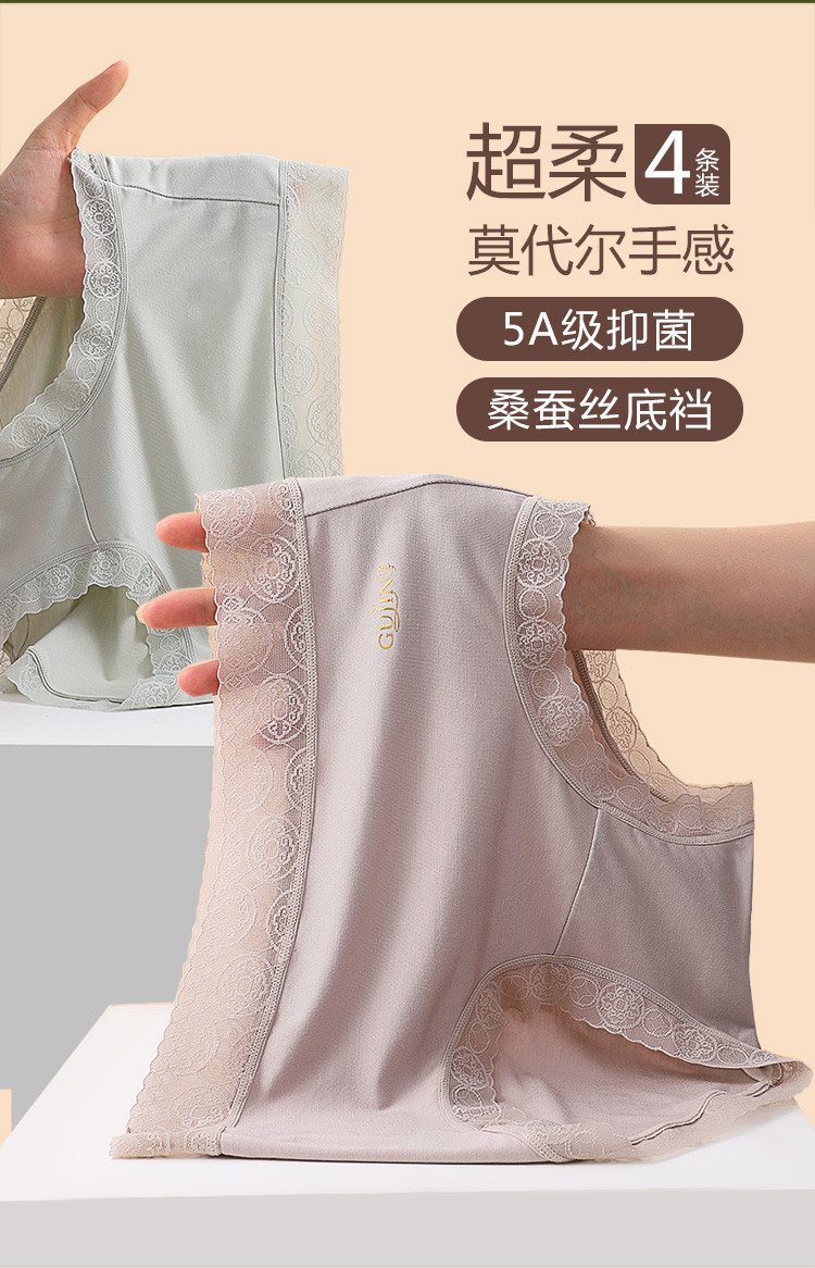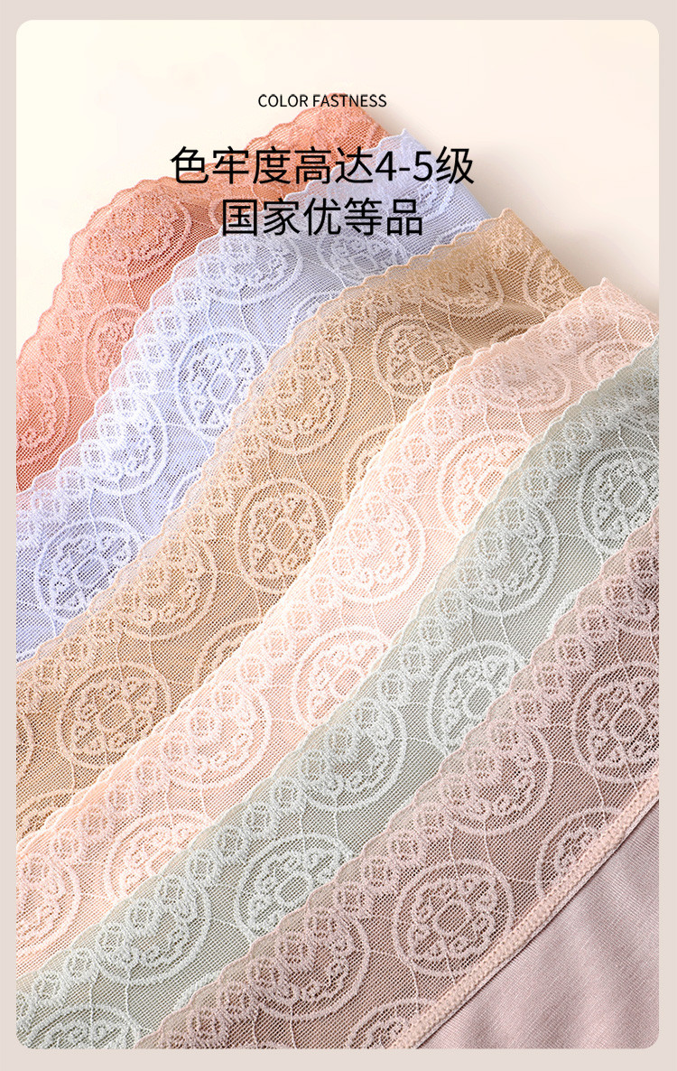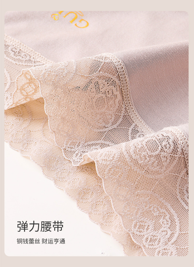 商品名称:【5A抑菌裆】4条装富贵铜钱花蕾丝含桑蚕丝裆女士内裤夏季薄款 663518