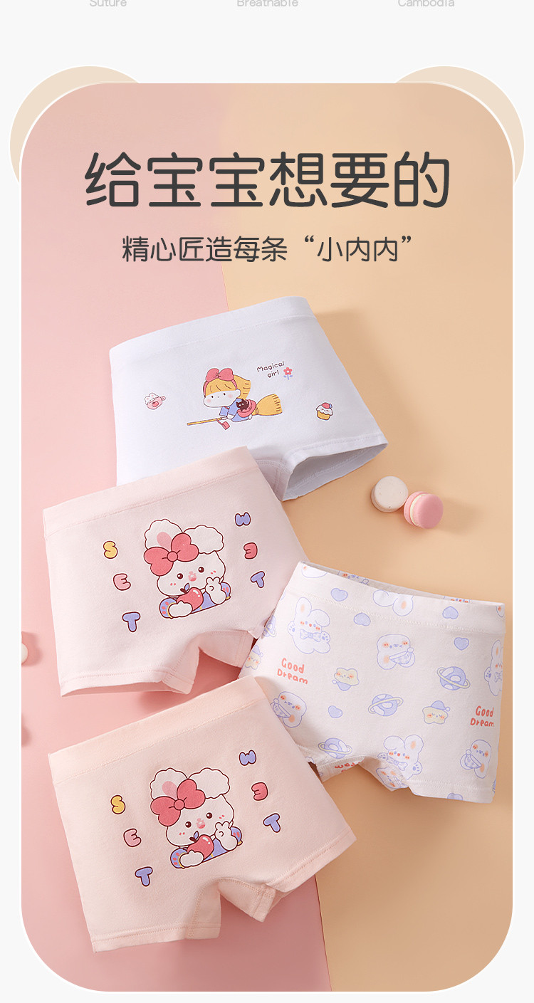 商品名称:【3A抑菌4条装】儿童内裤女童舒适透气弹力平角中大童女童内裤 867275