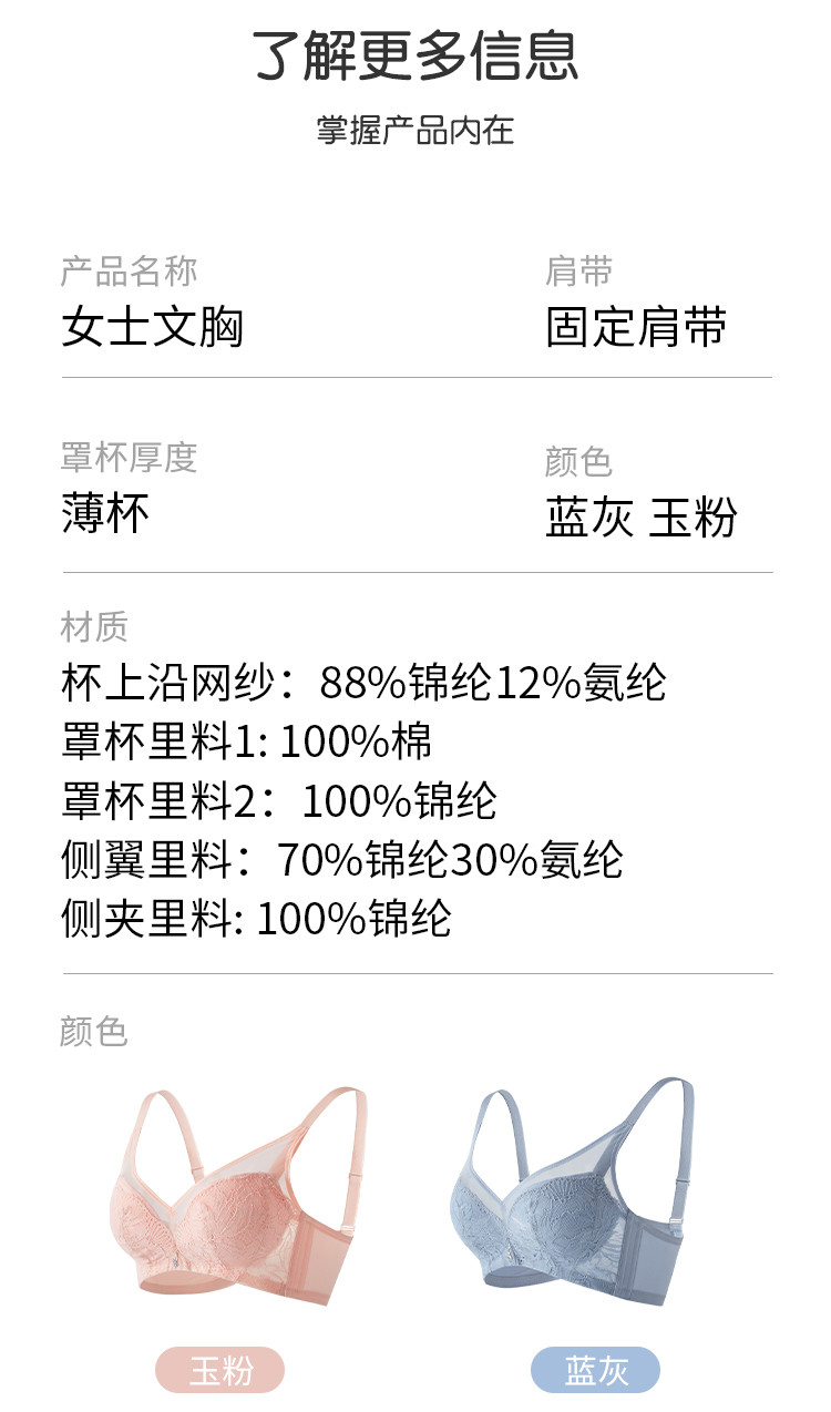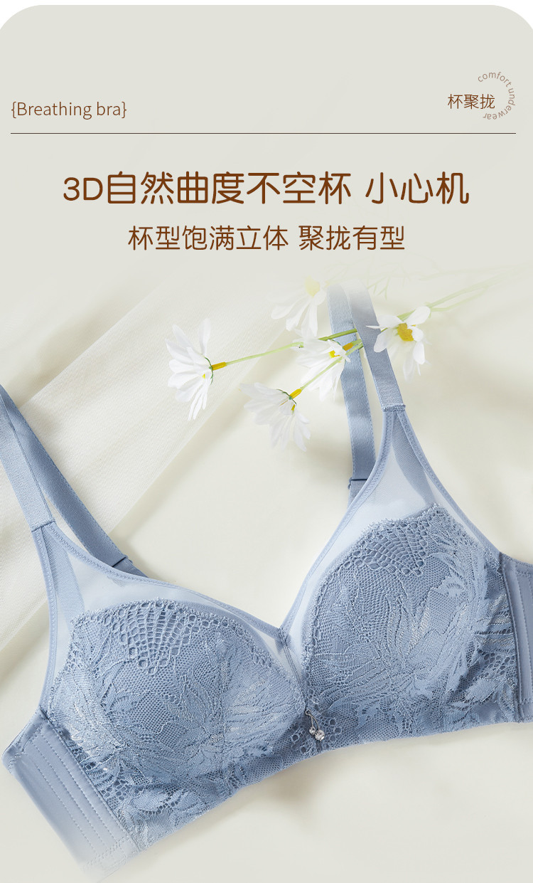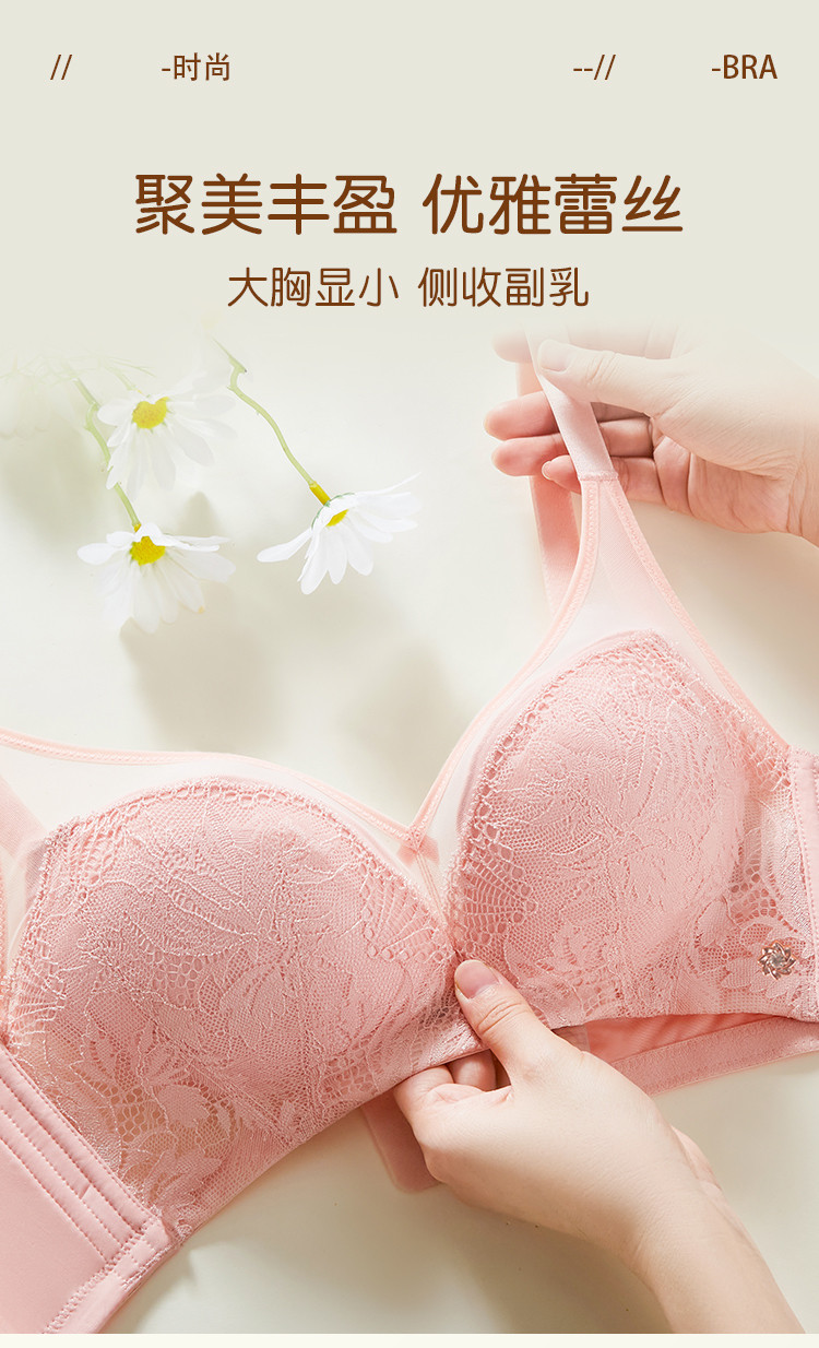 商品名称:捡漏【可拆卸胸垫】内衣女大胸显小防下垂收副乳网纱文胸小胸聚拢 076235