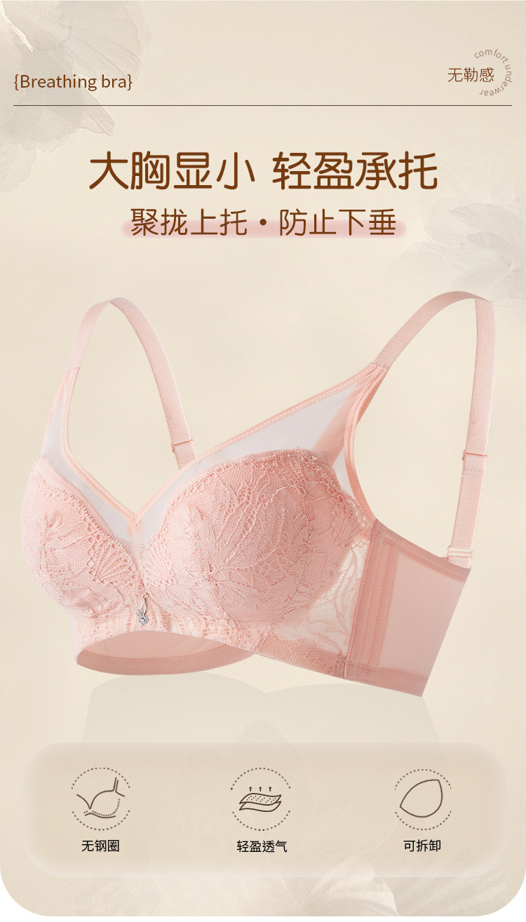 捡漏【可拆卸胸垫】内衣女大胸显小防下垂收副乳网纱文胸小胸聚拢 076235