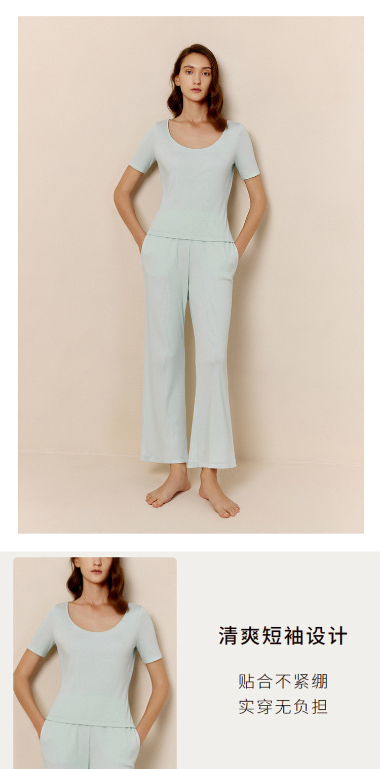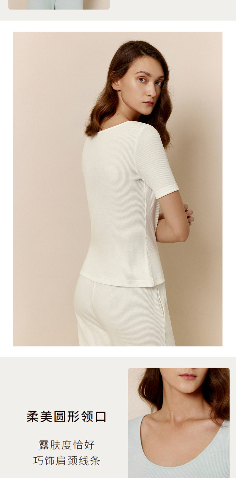 商品名称:NEIWAI内外棉感罗纹短袖上衣蓬松透气修饰身形 838602