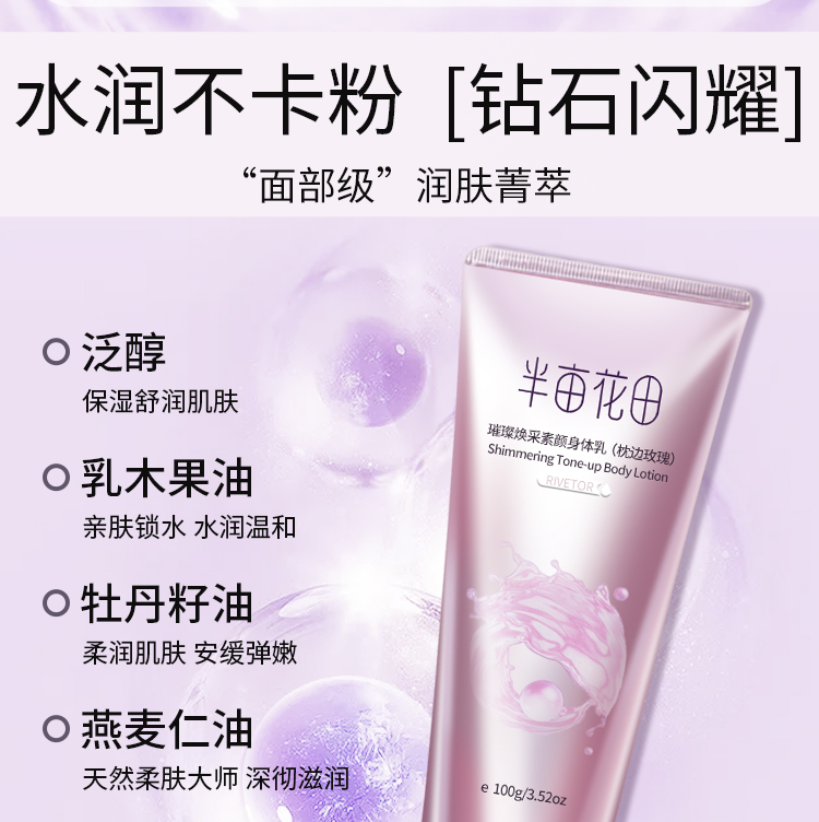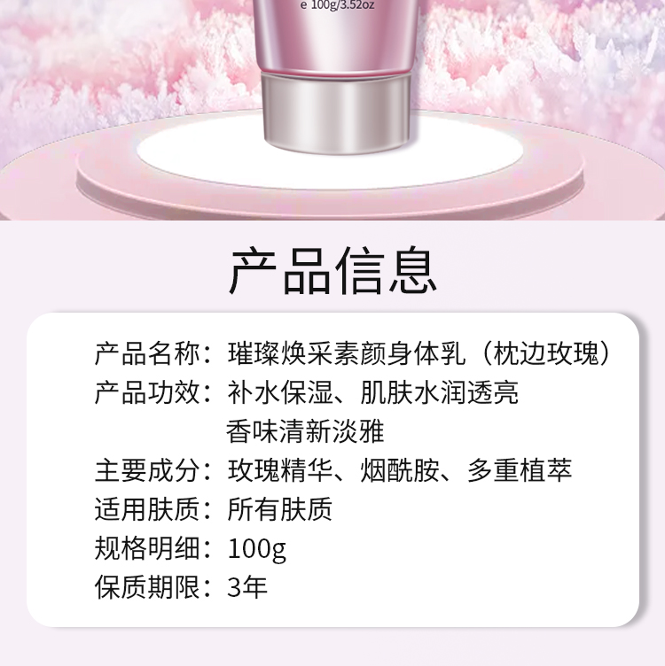 商品名称:半亩花田 璀璨焕采素颜身体乳 200G 枕边玫瑰 夏天带身体效果