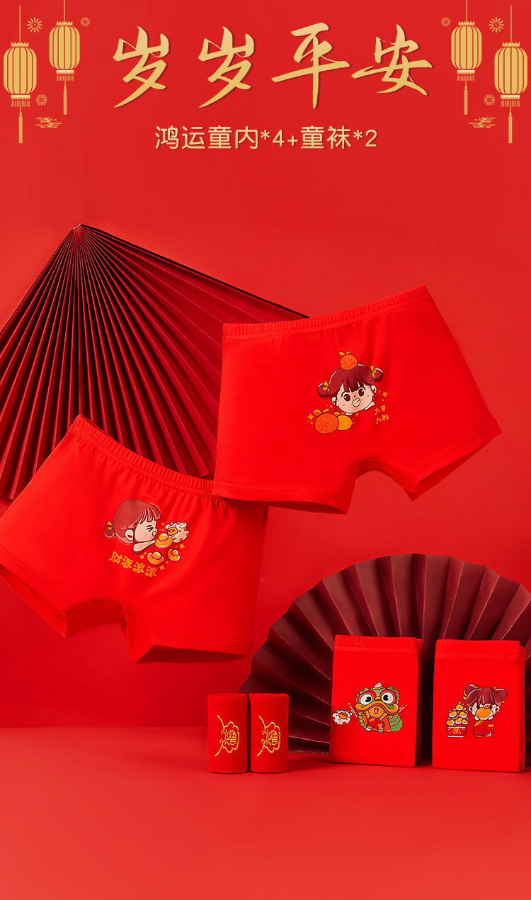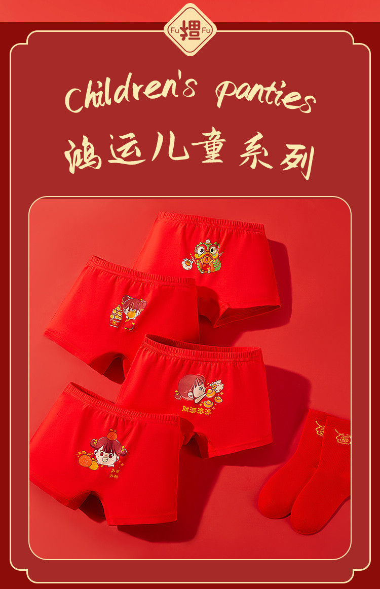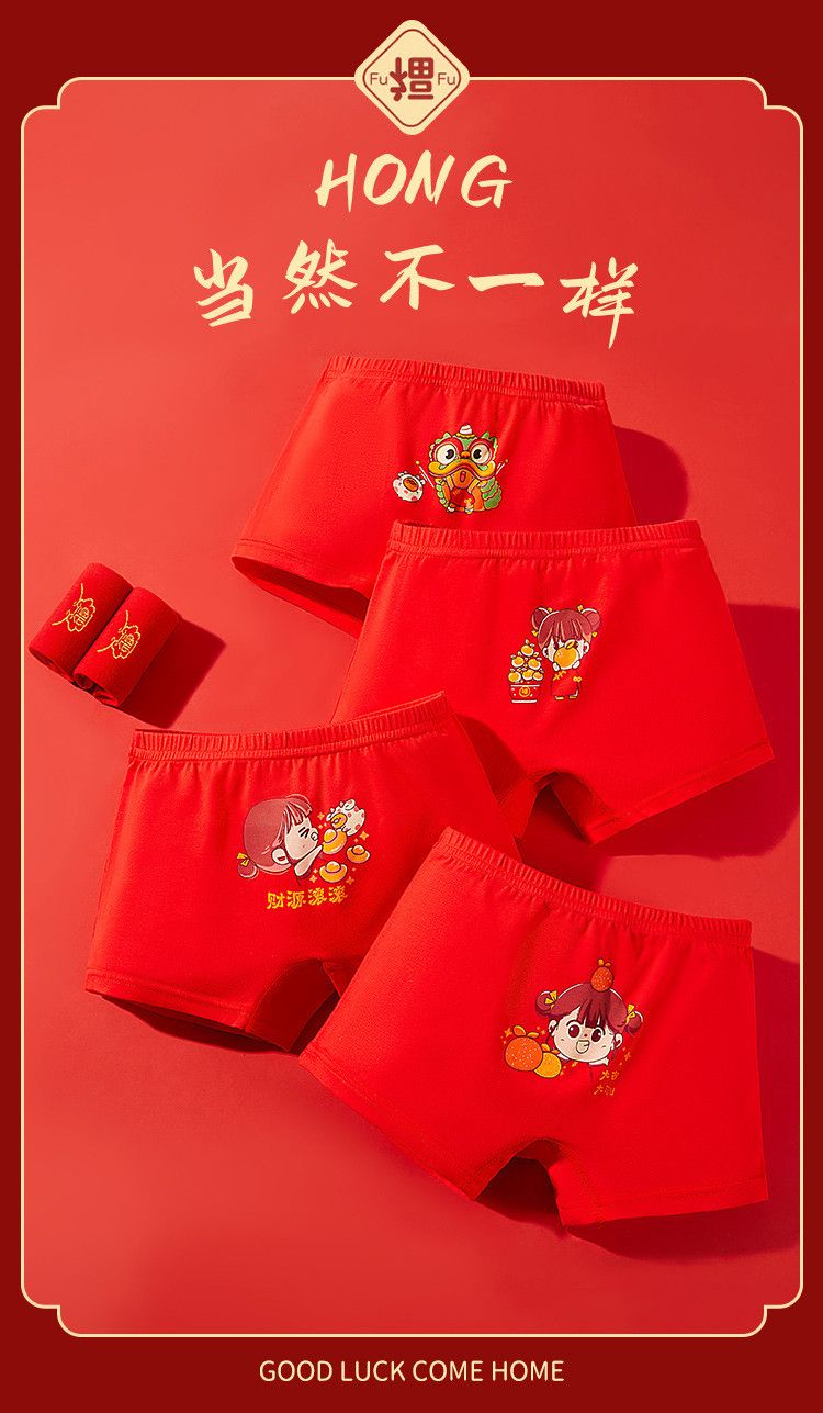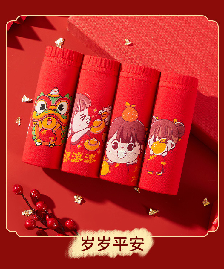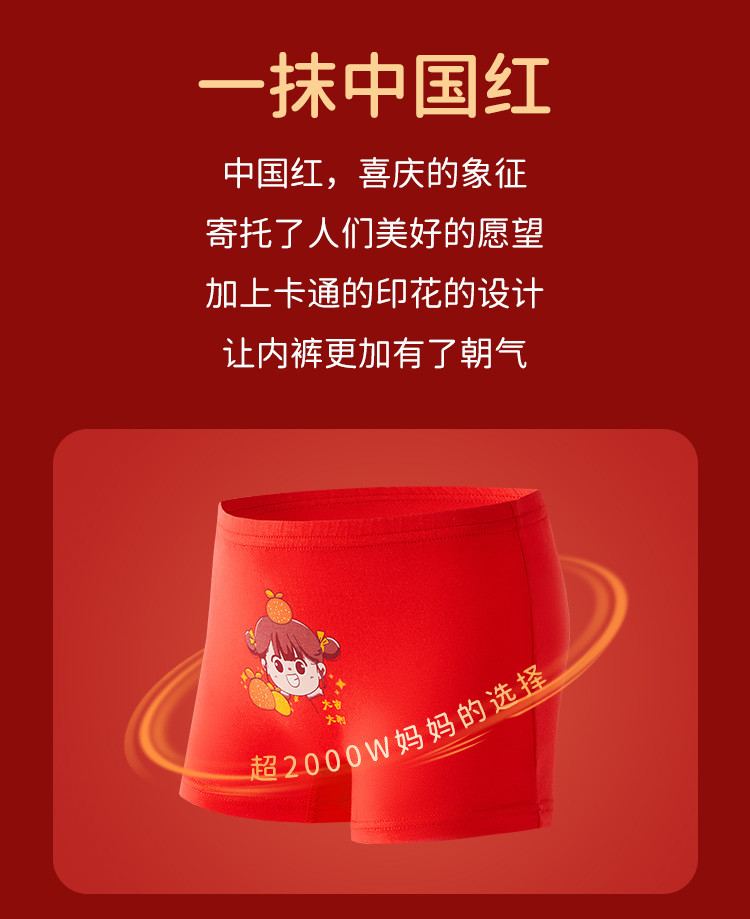 商品名称:【3A级抑菌礼鸿运盒装】儿童内裤女童平角中大童纯红棉质内裤女 410571