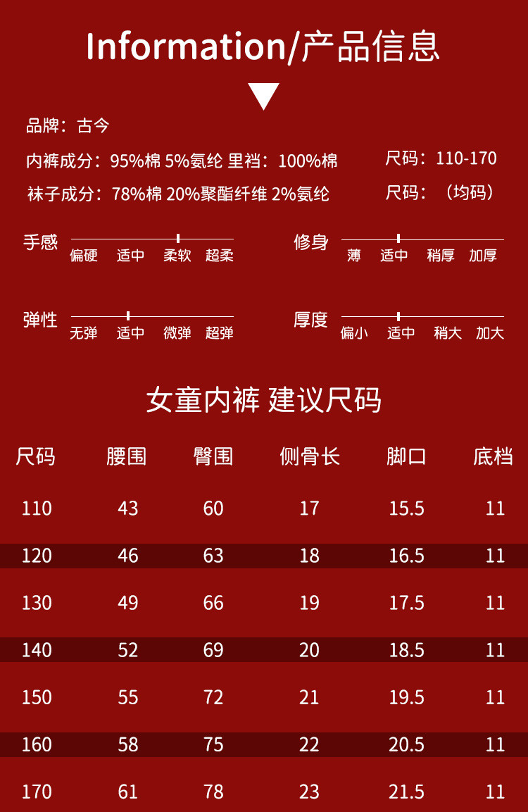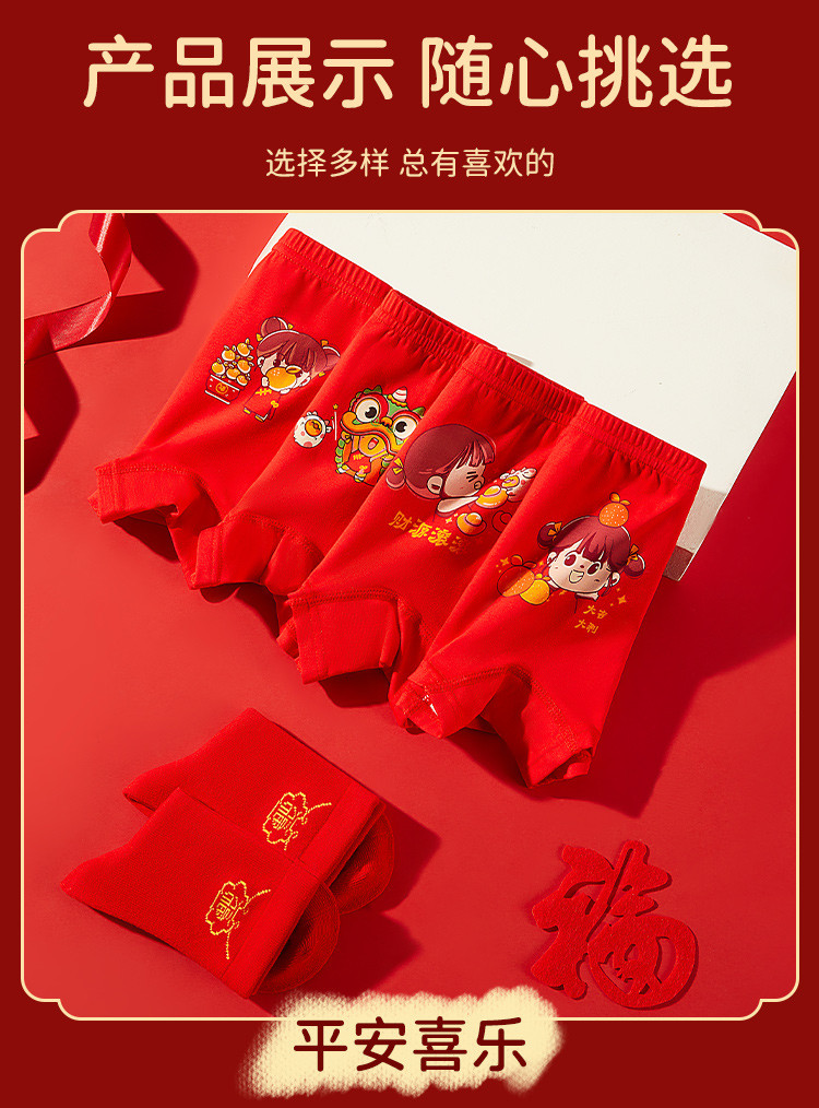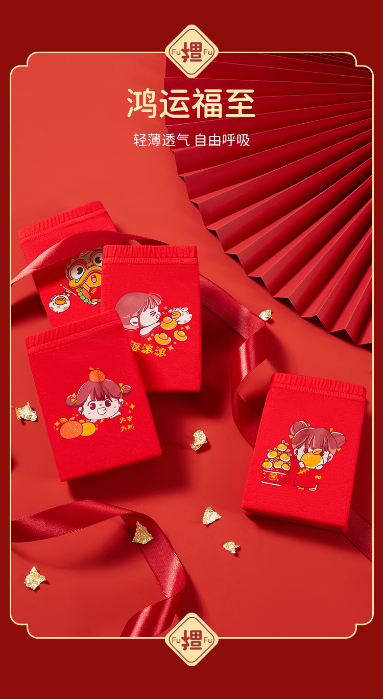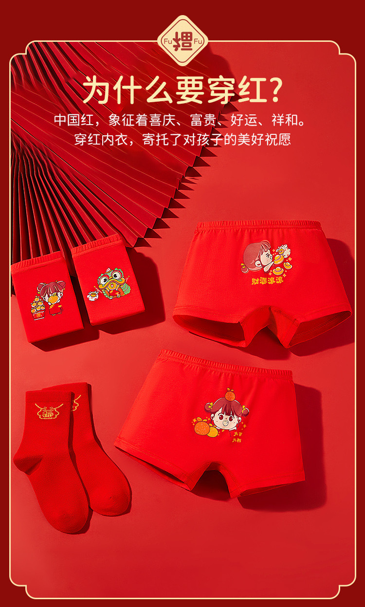 商品名称:【3A级抑菌礼鸿运盒装】儿童内裤女童平角中大童纯红棉质内裤女 410571