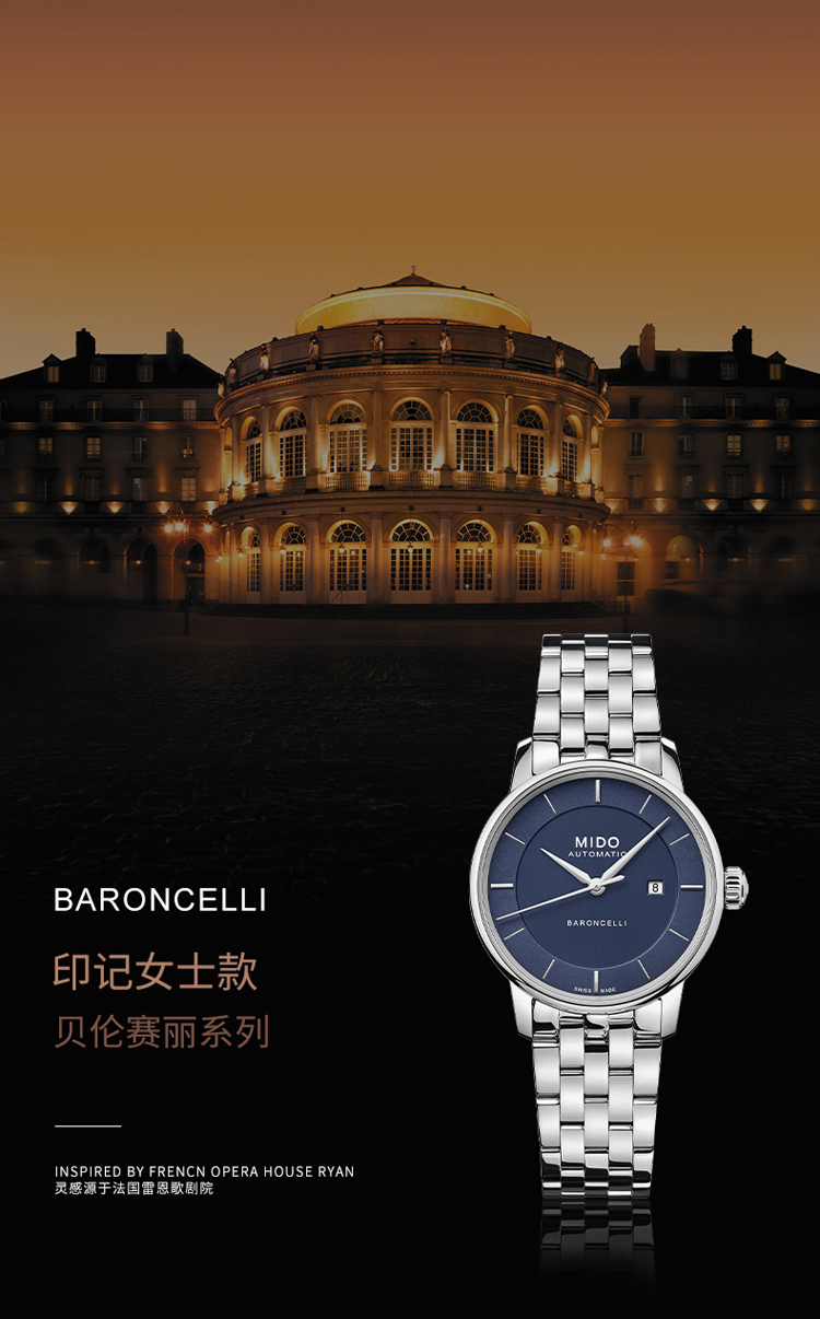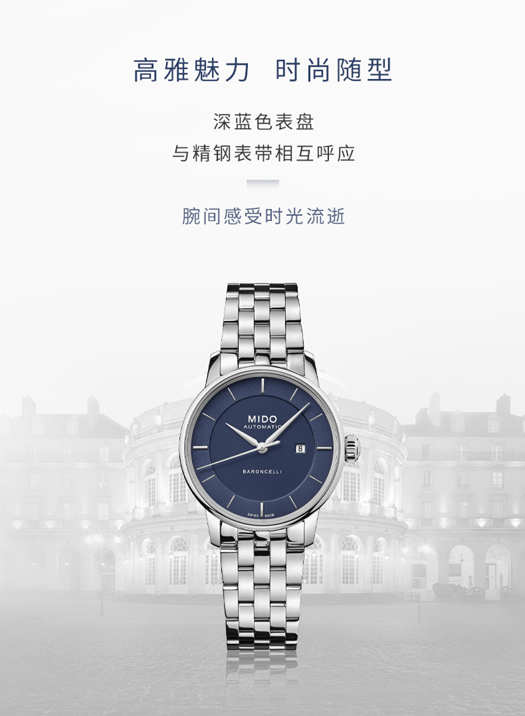 商品名称:Mido美度 贝伦赛丽新款休闲时尚机械女士腕表(不支持无理由退换货)