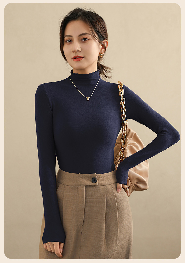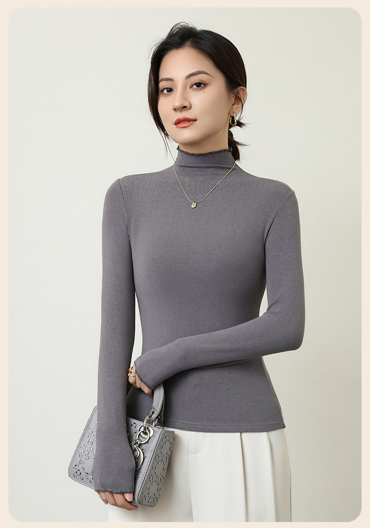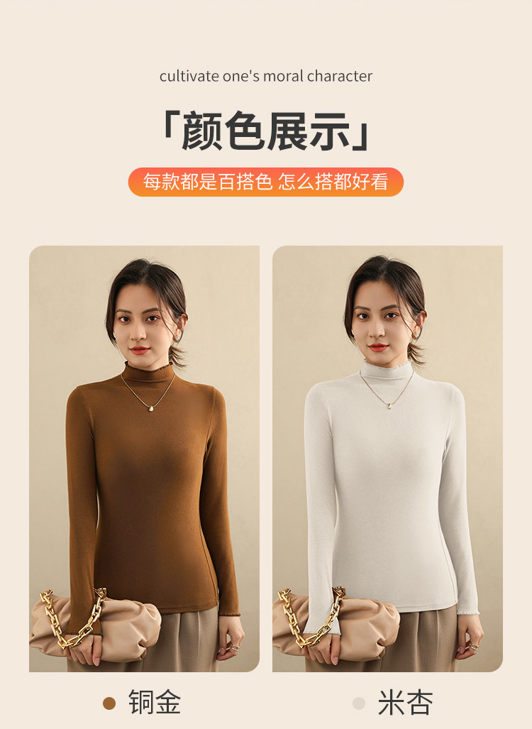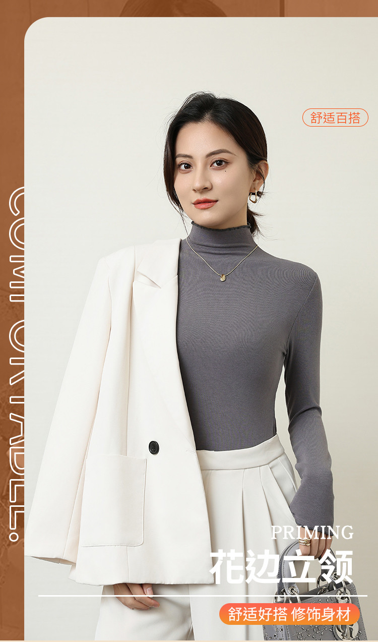 商品名称:【木耳边】秋冬打底衫女士西装内搭外穿上衣气质高级感t恤长袖 480203