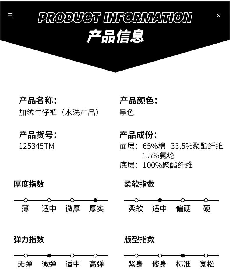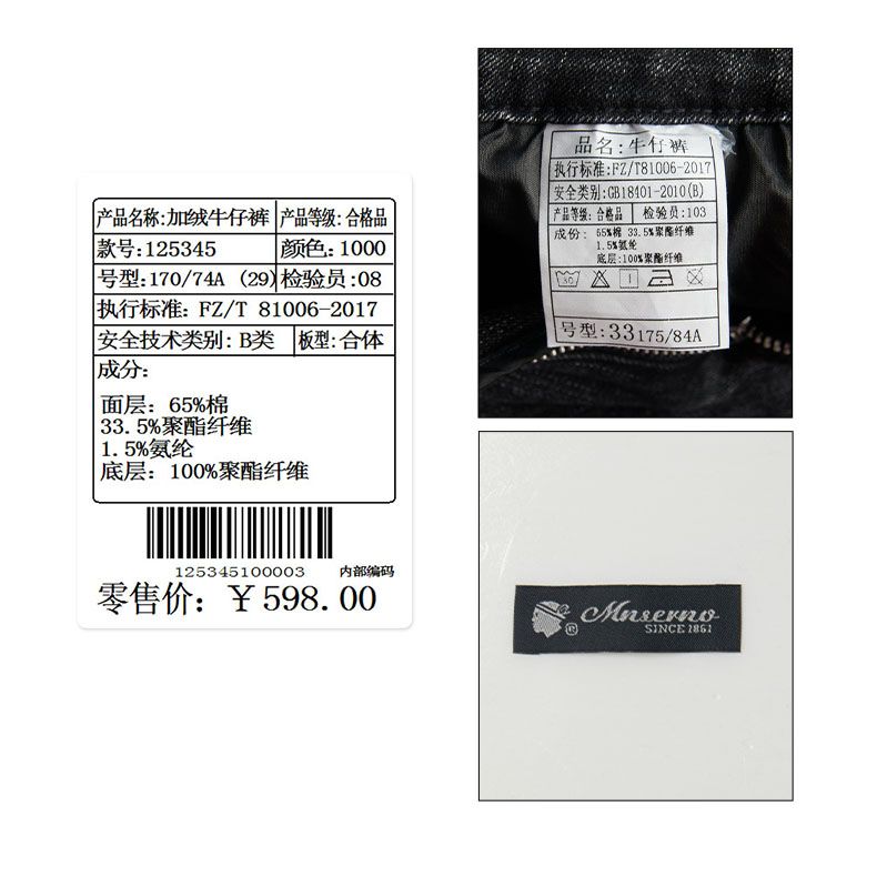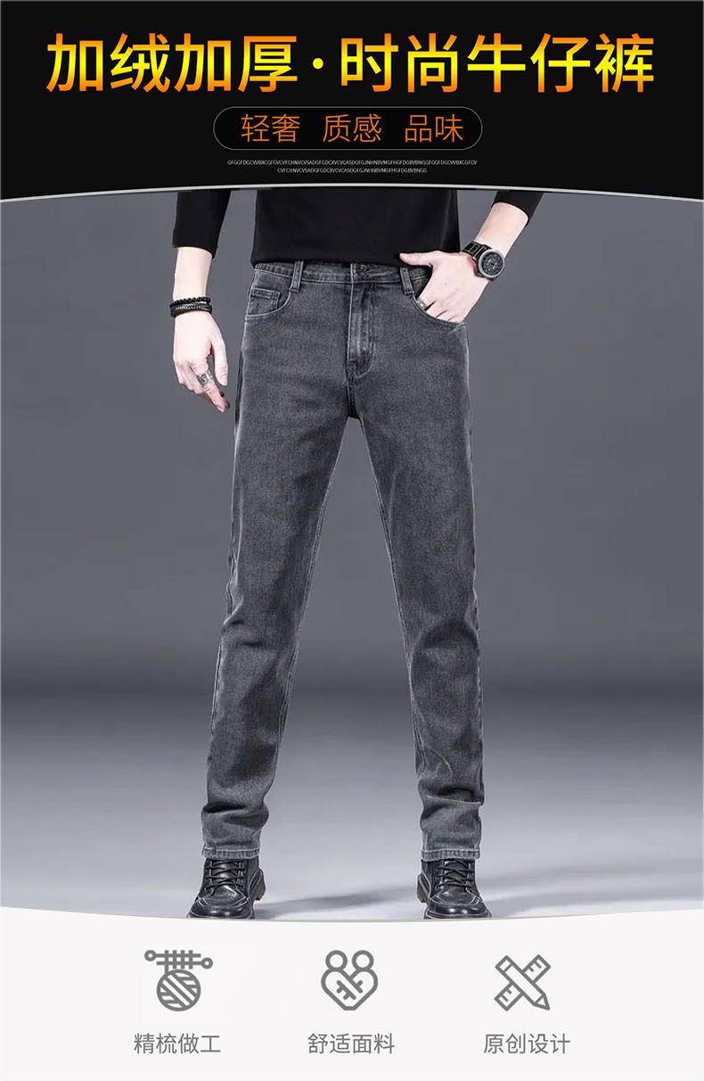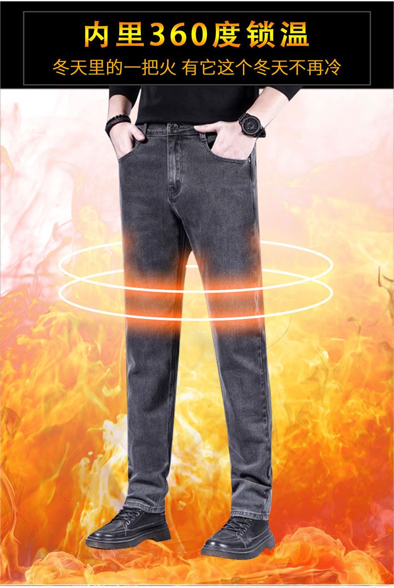 商品名称:曼西尔奴男士冬季时尚休闲百搭弹力直筒加绒加厚保暖牛仔裤125345TM