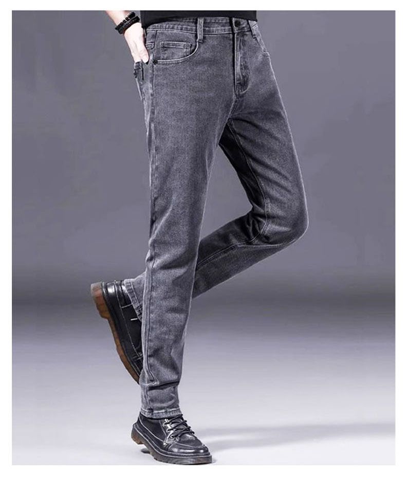 曼西尔奴男士冬季时尚休闲百搭弹力直筒加绒加厚保暖牛仔裤125345TM