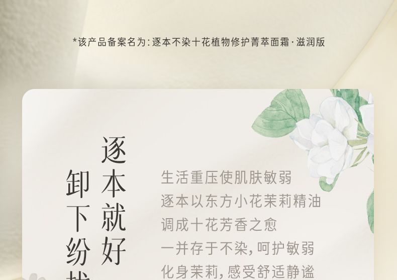 商品名称:逐本 不染十花植物修护菁萃面霜 50g