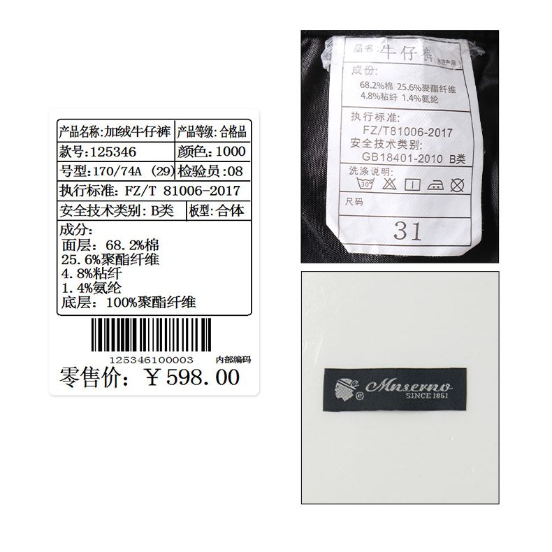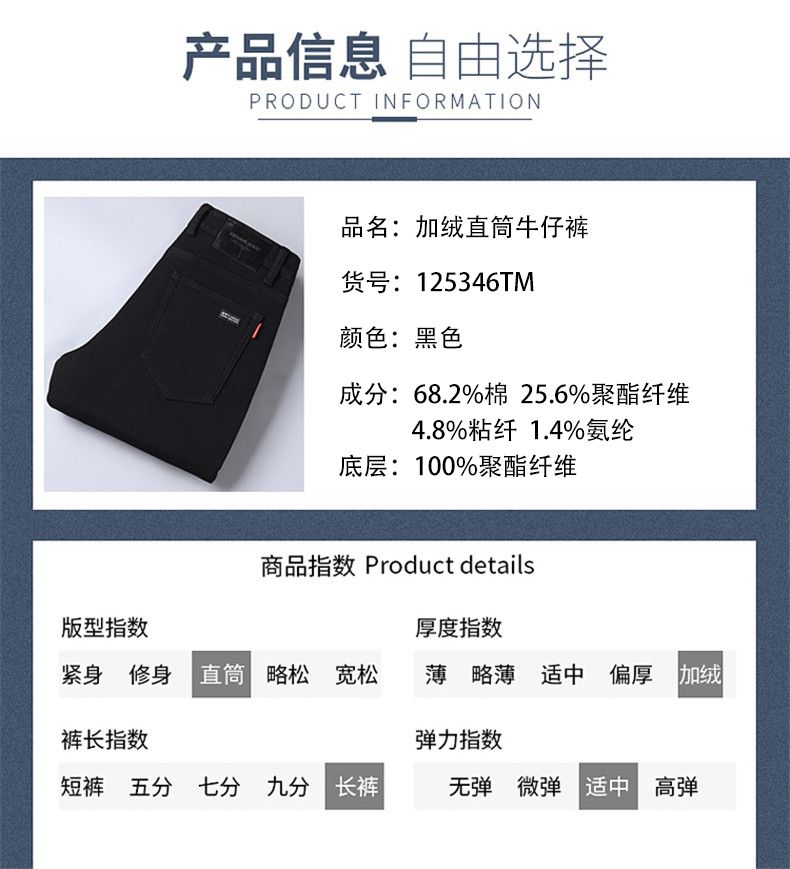 商品名称:曼西尔奴冬季男士直筒百搭加厚加绒保暖休闲牛仔裤125346TM