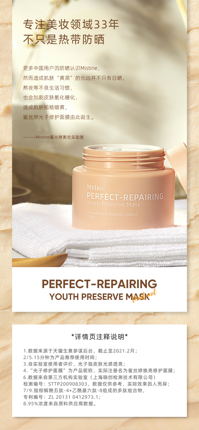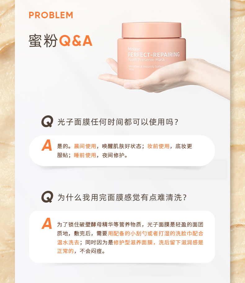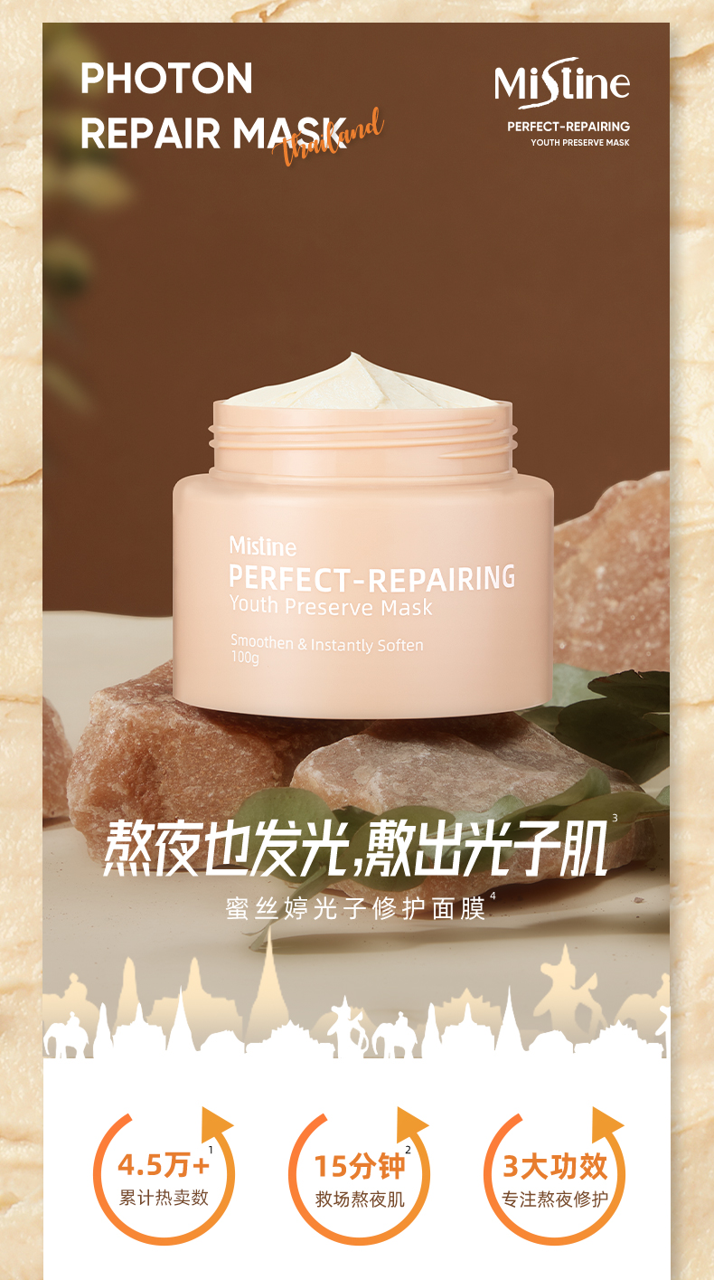 商品名称:Mistine/蜜丝婷 光子面膜女熬夜修护补水保湿睡眠涂抹式清洁泥膜 100g