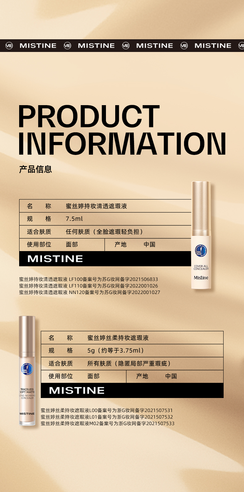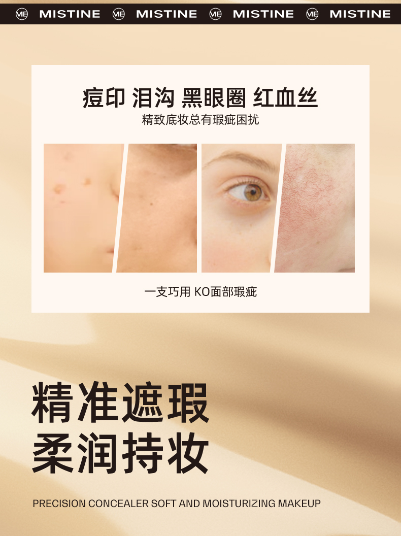 商品名称:Mistine/蜜丝婷 遮瑕液膏 7.5ml 痘印遮盖痘痘斑点雀斑 黑眼圈遮暇持久滋润