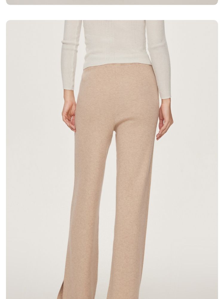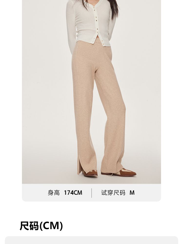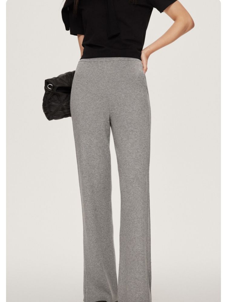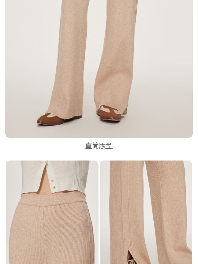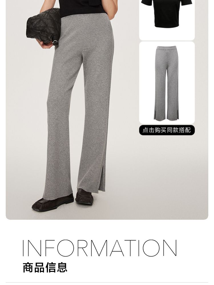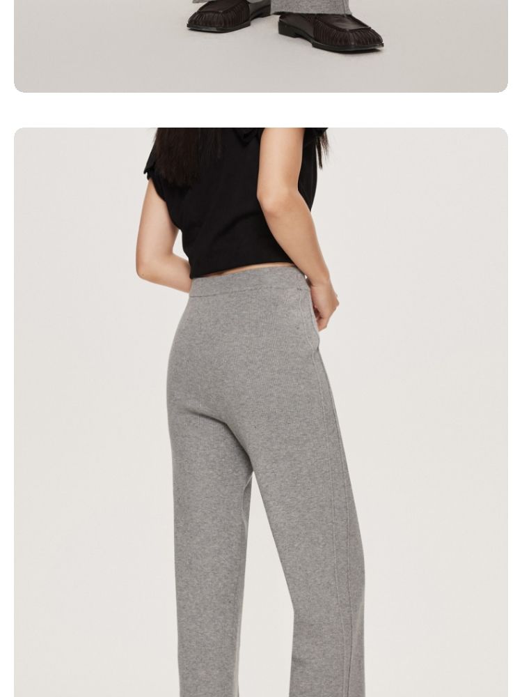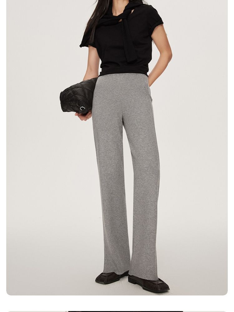 商品名称:休闲裤舒适松紧腰含羊毛针织高腰直筒长裤 869457