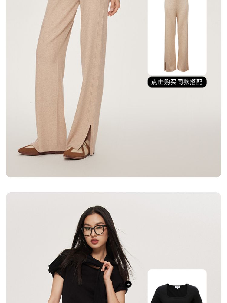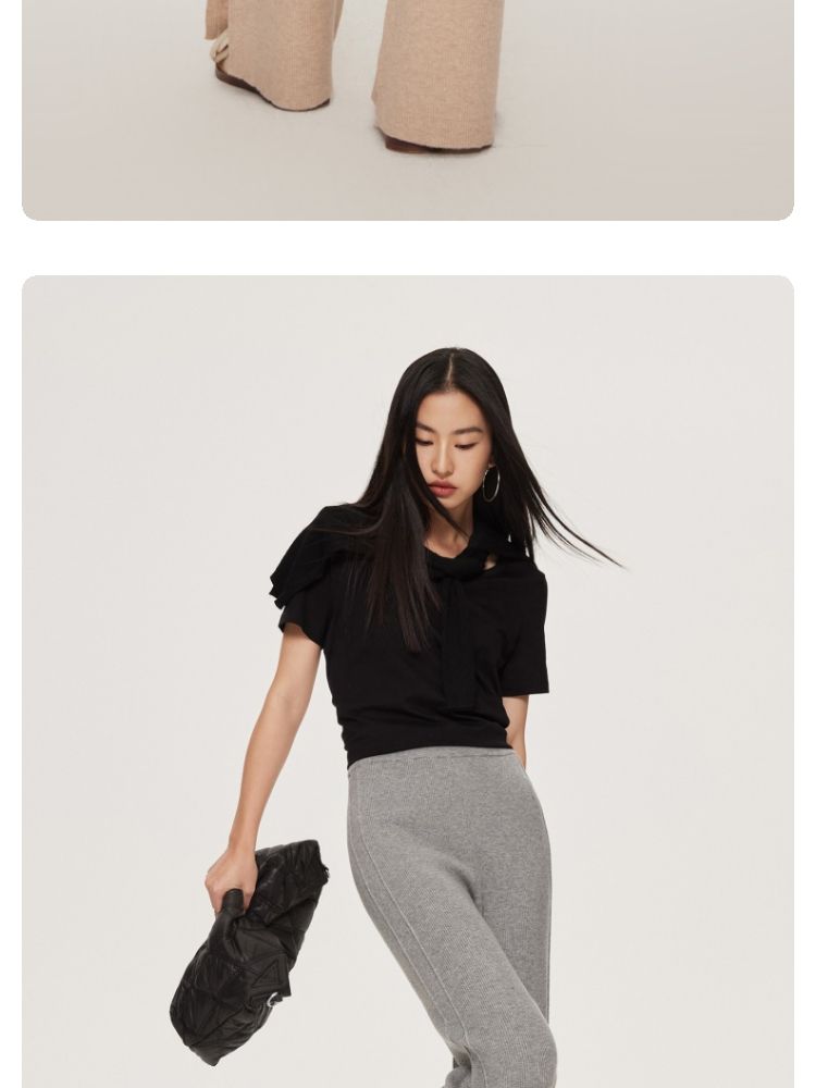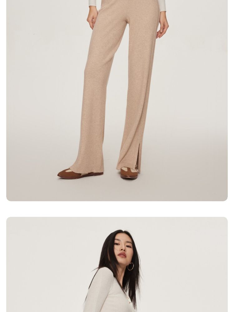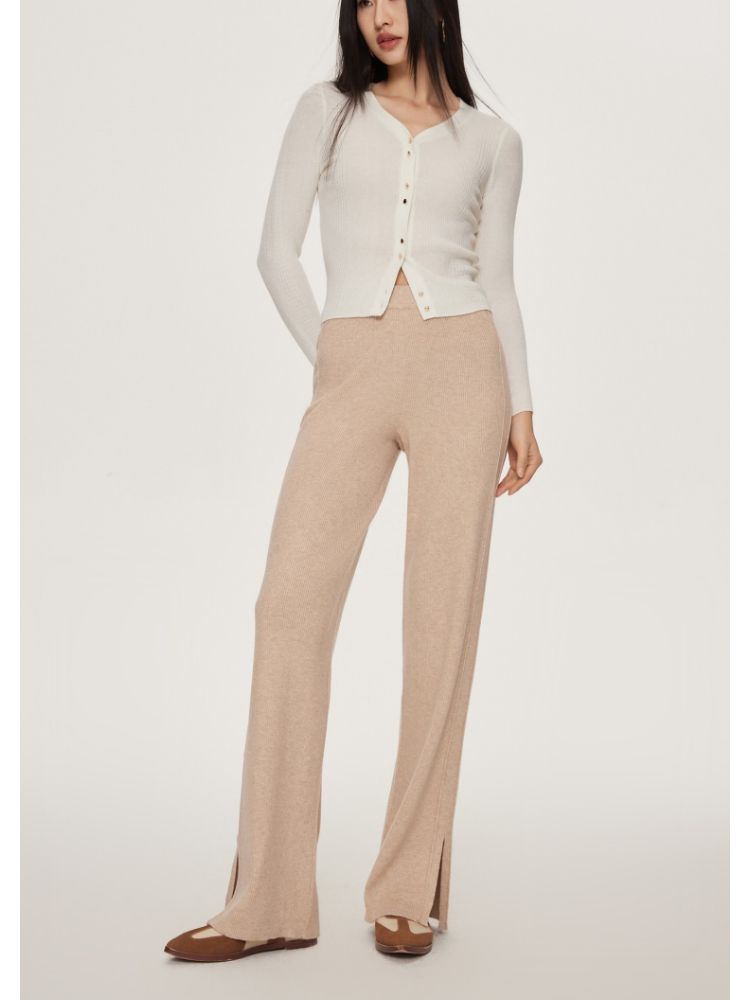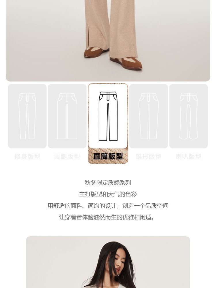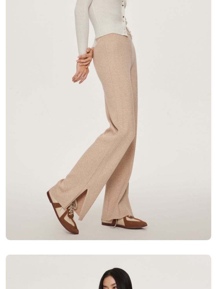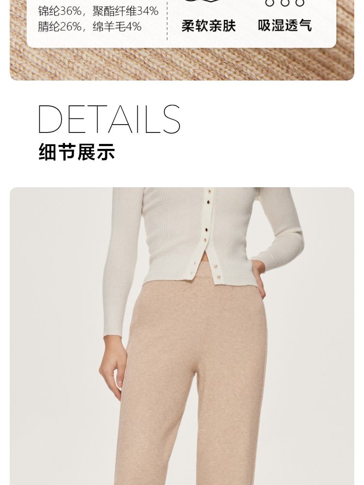 商品名称:休闲裤舒适松紧腰含羊毛针织高腰直筒长裤 869457