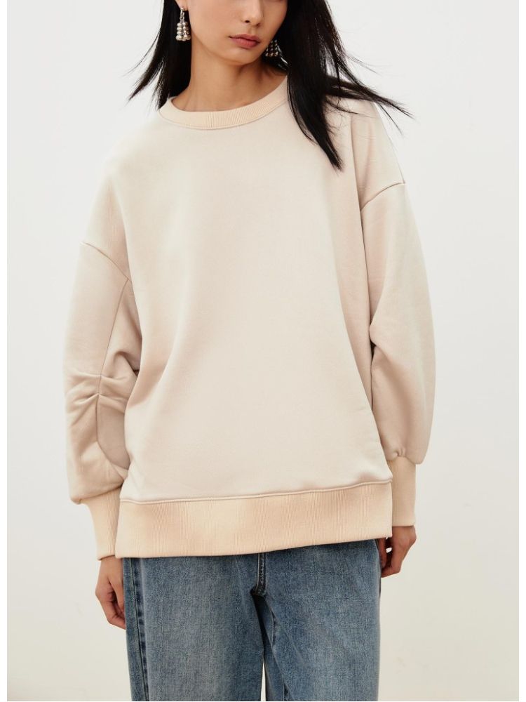【压褶设计】春夏休闲舒适圆领含棉长袖卫衣女气质百搭时尚 736017