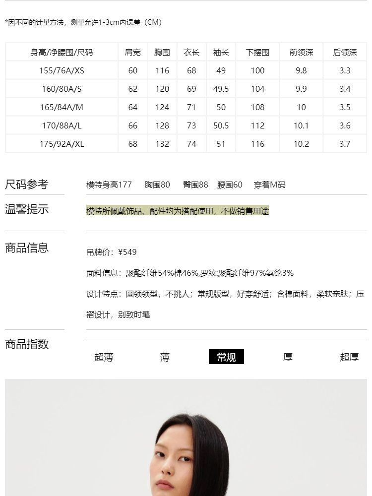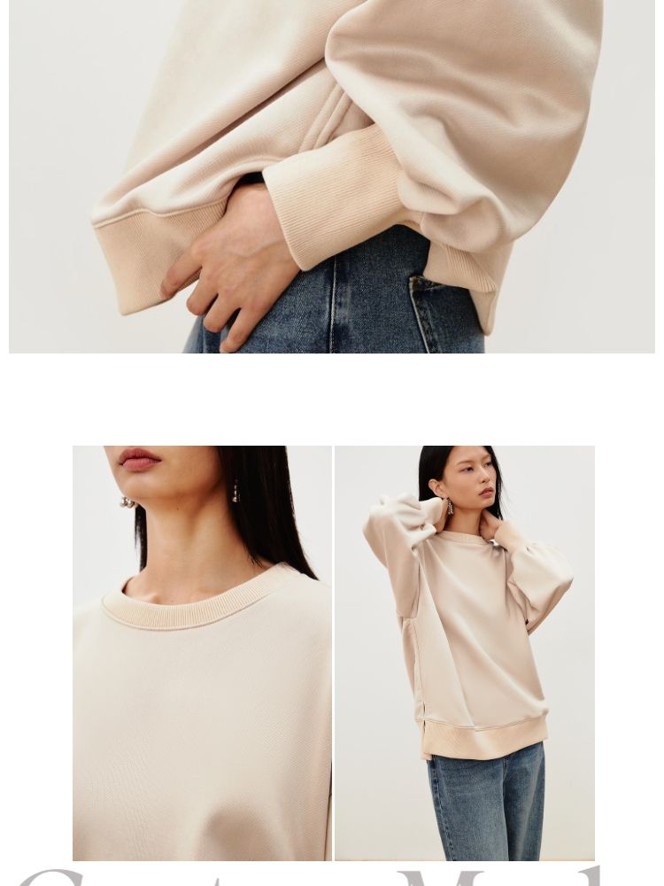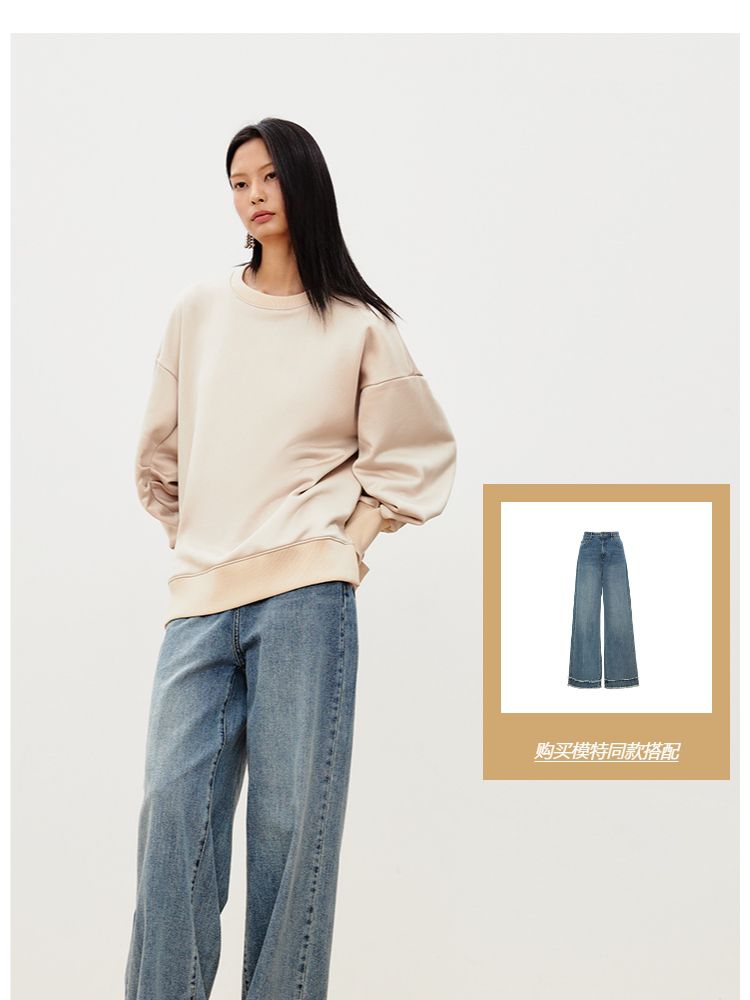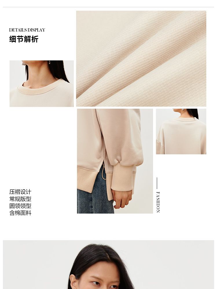 商品名称:【压褶设计】春夏休闲舒适圆领含棉长袖卫衣女气质百搭时尚 736017