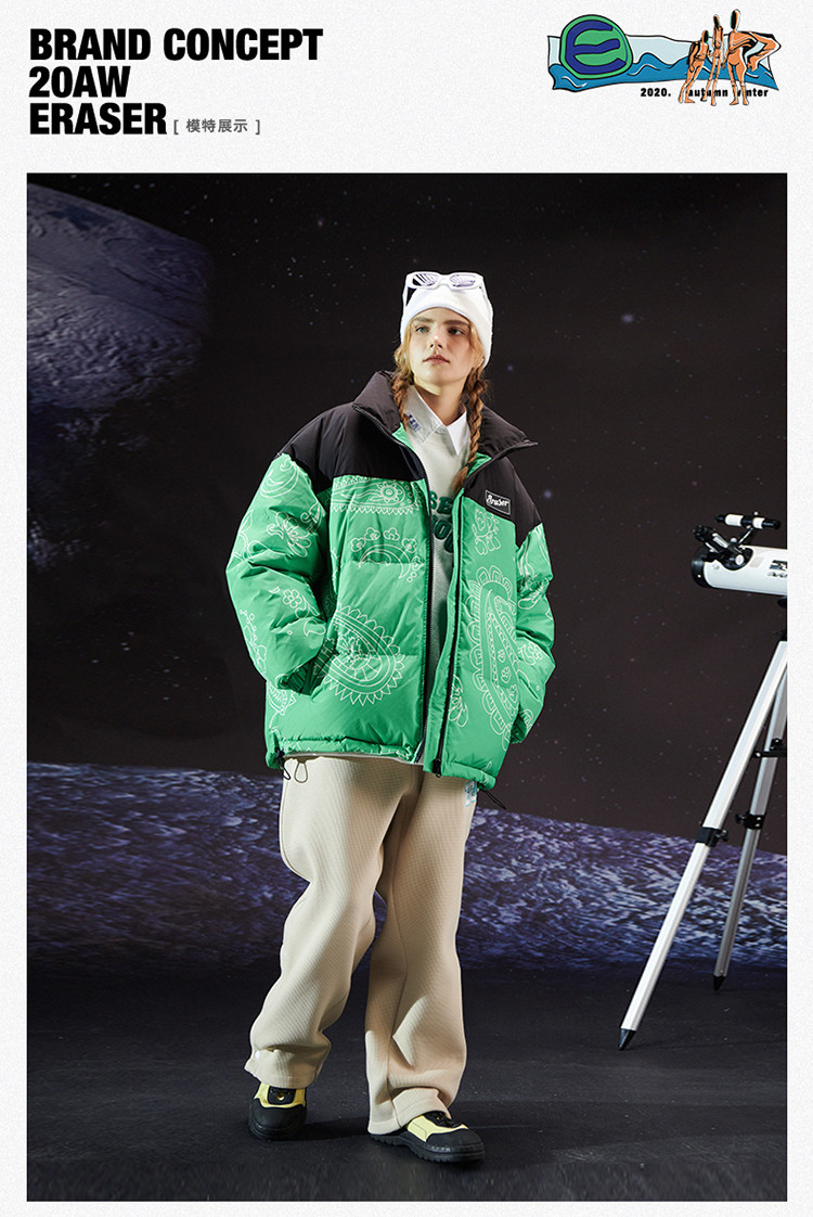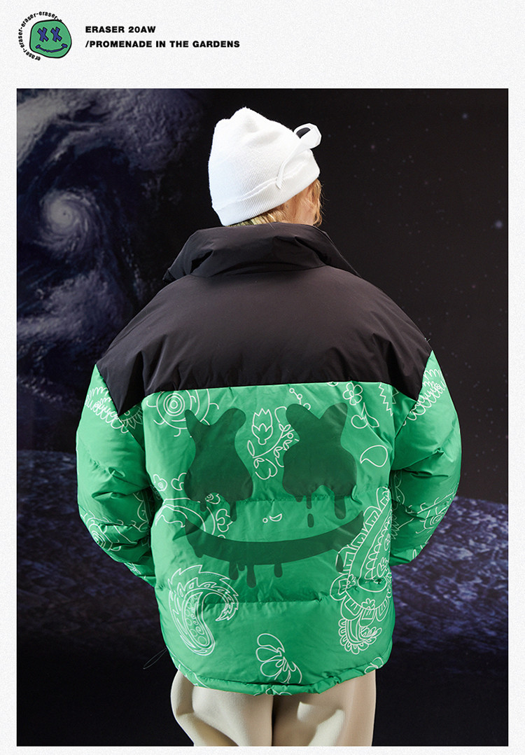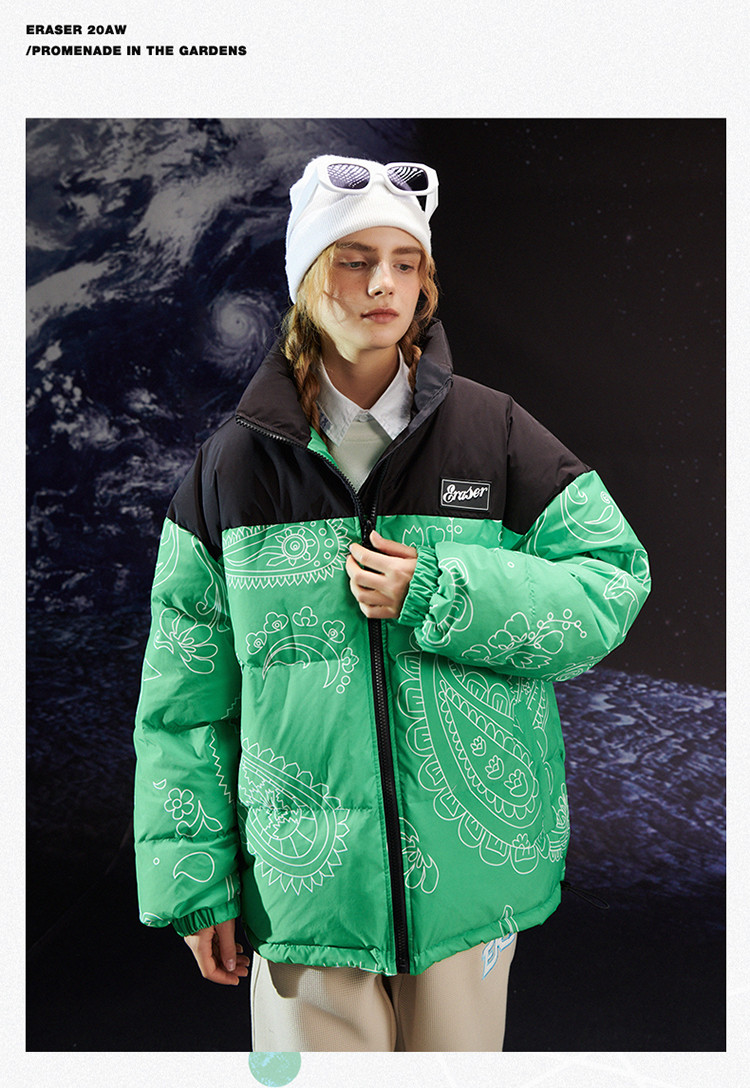 腰果花印花立领短款羽绒服男女同款拼接撞色外套国潮牌情侣装 492247
