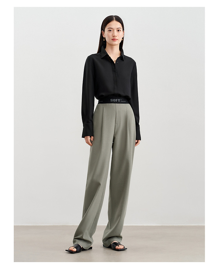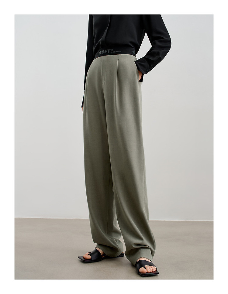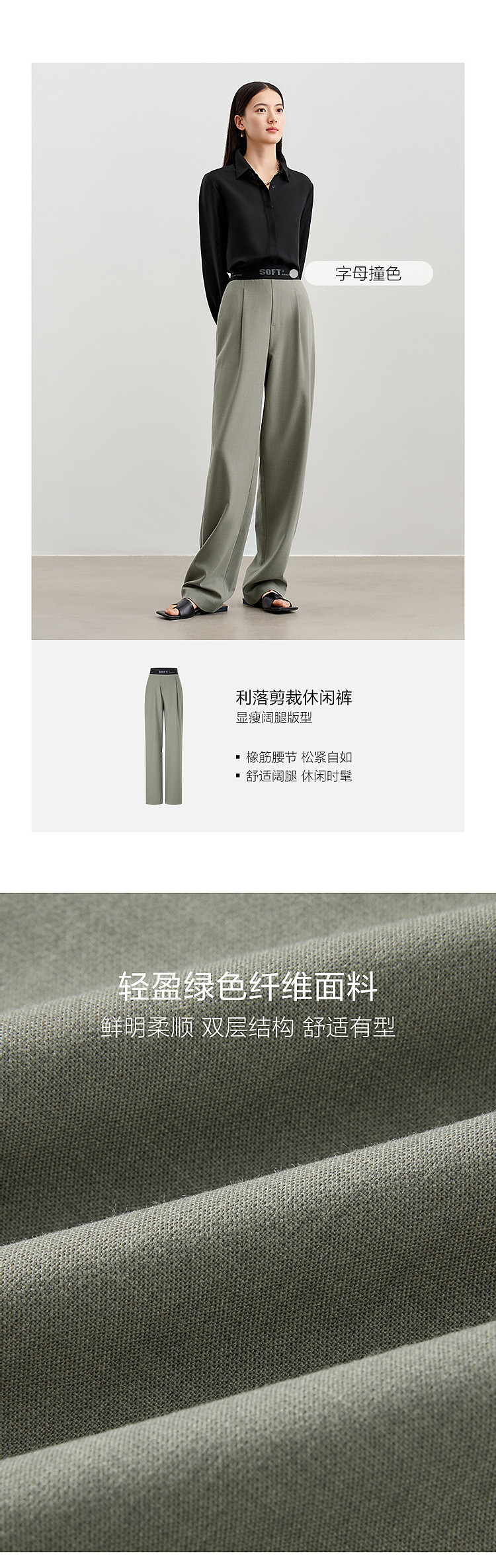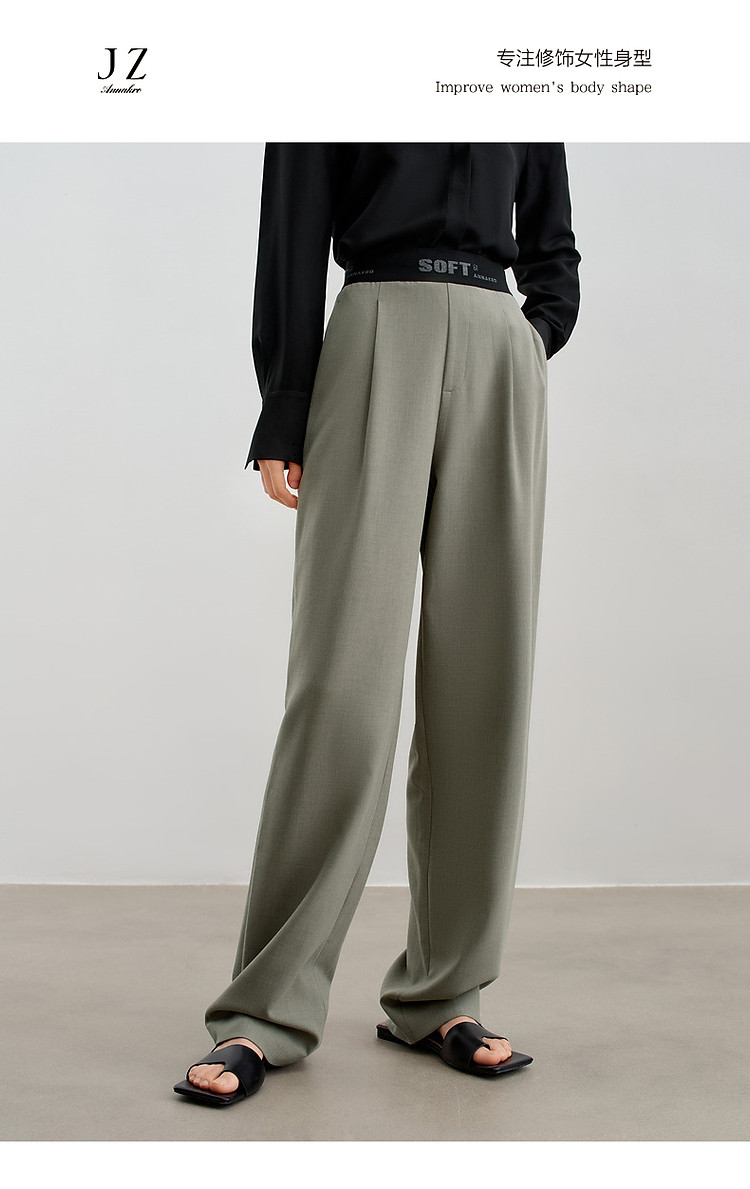 玖姿旗下安娜蔻系列通勤绣花压褶阔腿裤休闲裤春季 876748